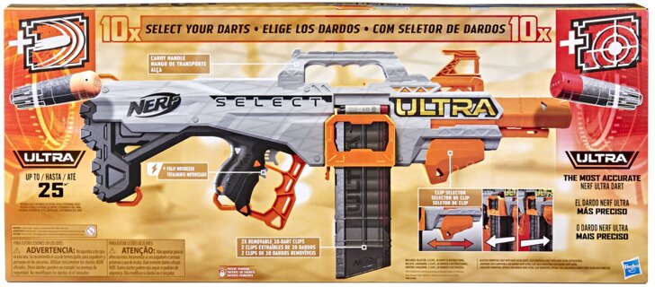 Цей бластер обладнаний двома обоймами, кожна з яких вміщує по 10 стріл Нерф Ультра.