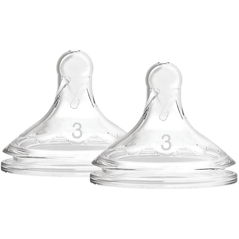 У комплект входять 2 силіконові соски 3-го рівня для пляшечки з широкою шийкою. Рекомендується стерилізувати перед початком використання, мити перед кожним використанням. У разі тривалого застосування накривати захисним ковпачком. При пошкодженнях слід утилізувати, оскільки функціональність і безпеку може бути порушена.