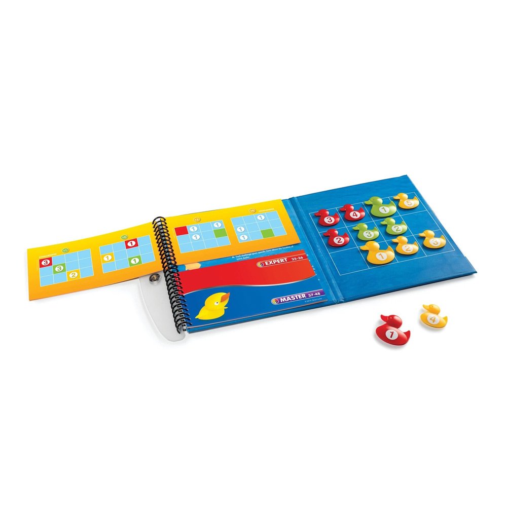 Настільна магнітна гра Кря-дедукція стане вам незамінним помічником в довгій дорозі. Ваша дитина полюбить довгі поїздки, адже тепер вони стануть набагато цікавіші з цієї дорожньої грою. Суть гри полягає в тому, щоб розставити качечок в правильному порядку. Є три сімейства качок: жовта, червона і зелена. За кожною мамою-качкою повинні слідувати її каченята. Щоб успішно пройти рівні і знайти місце для кожної качки, дотримуйтеся порад, які зазначені на картках.