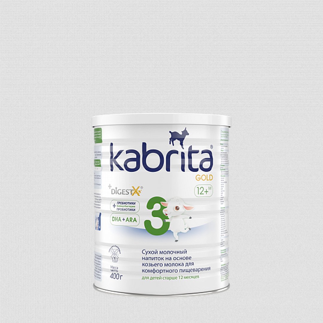 Kabrita 3 GOLD - ніжний молочний напій з м'яким вершковим смаком. Продукт отриманий з натурального нідерландського козячого молока з додаванням цінної козячої сироватки. Дві порції Kabrita 3 в день компенсують до 50% кальцію, 30% заліза і 70% йоду від добової потреби малюка. Козяче молоко і продукти на його основі добре засвоюються і переносяться. Суміш "Кабріта-3" рекомендована дітям старше року. Склад збагачений DigestX - комплексом жирів з бета-пальмітатом, подібним жировому профілю грудного молока. Він знижує ймовірність запорів, покращує енергообмін і засвоєння кальцію. Поліпшенню травлення і зміцненню імунітету сприяють також пребіотики і пробіотики. Присутні в суміші жирні кислоти DHA (ω-3) і ARA (ω-6) необхідні для правильного розвитку мозку і зору, нуклеотиди - для зміцнення імунітету.