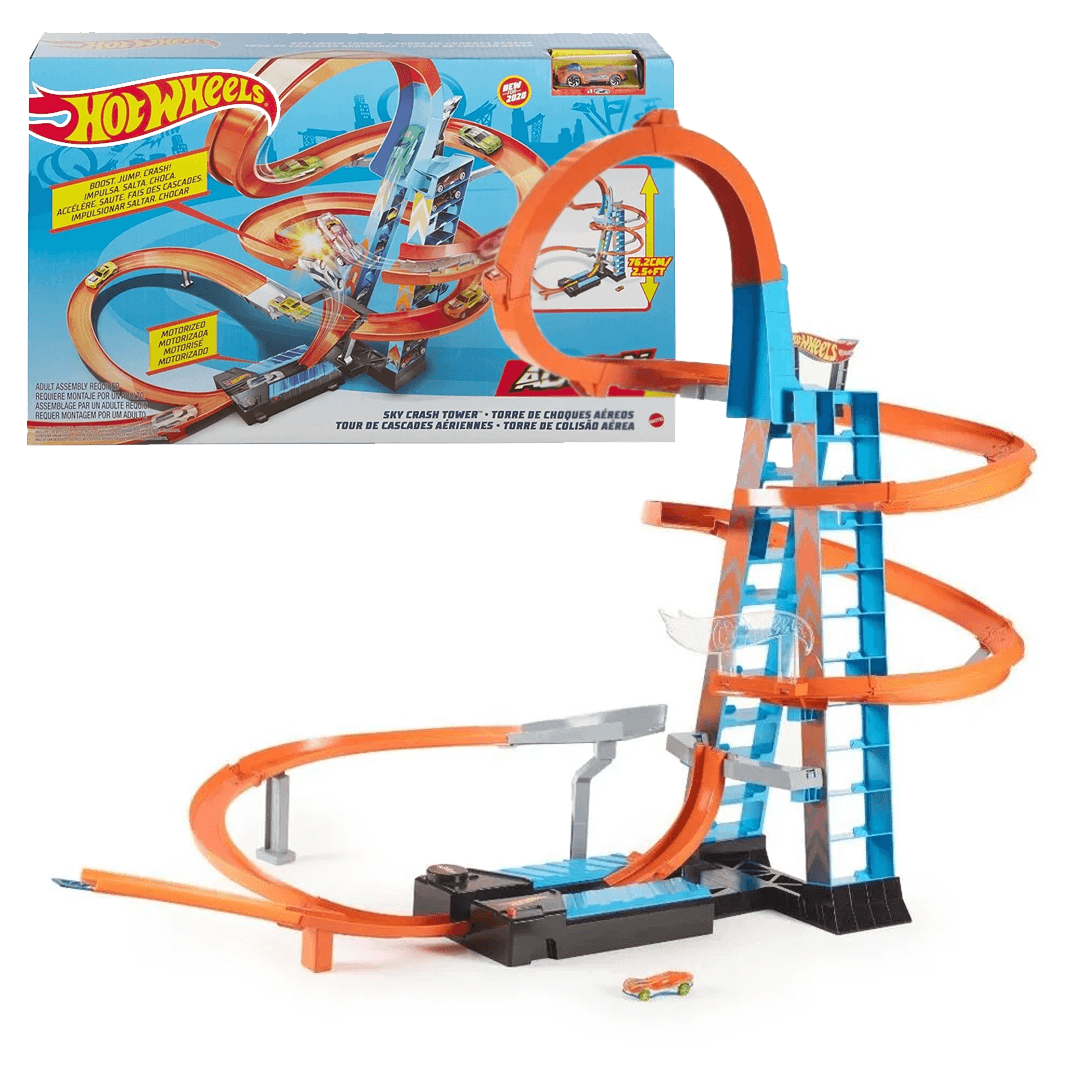 Трек Hot Wheels Хмарочос - супер крута опорна конструкція, висота якої дорівнює 60 см, призначена для гонок на великих швидкостях. З ігровим набором діти можуть не тільки запускати машинки вгору, але і здійснювати унікальні трюки, потрапляти в аварії при вільному падінні. Додатково Хмарочос може служити місцем парковки для 20 і більше автомобілів. До комплекту входять: хмарочос у розібраному вигляді, 1 машинка, інструкція. Гра з набором розвиває уяву, увагу, творчі здібності, фантазію і дрібну моторику. Рекомендовано дітям від 5-ти років.