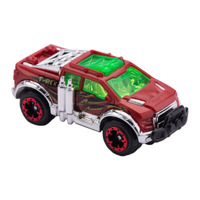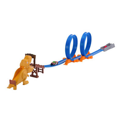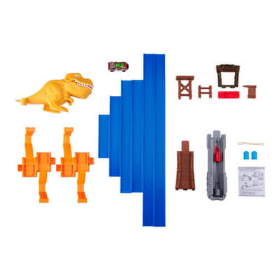 "Атака Ті-Рекса" - ігровий набір з крутим автотреком від Metal Machines. Його створено для хлопчаків старше 4-х років, що обожнюють автівки, швидкість та трюки. У комплекті: пускова установка, траса довжиною 2,6 м з двома величезними петлями, ворота та динозавр-гірка, металева машинка. Завдання гравця - запустити автівку так, щоб вона проїхала по всій трасі, зробила два кола та стрибнула в пащу Ті-Рексу. Гра допоможе дитині розвивати уяву, дрібну моторику, просторове мислення.