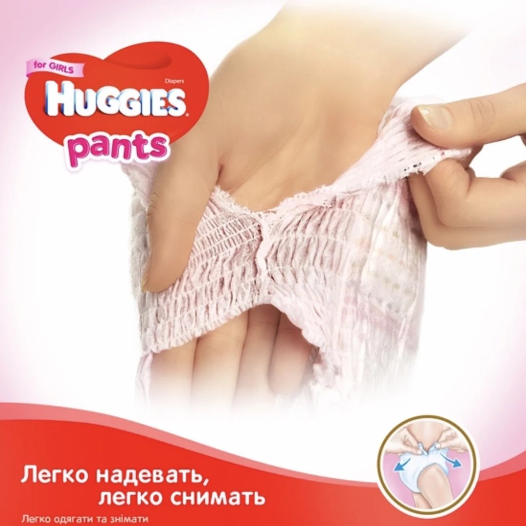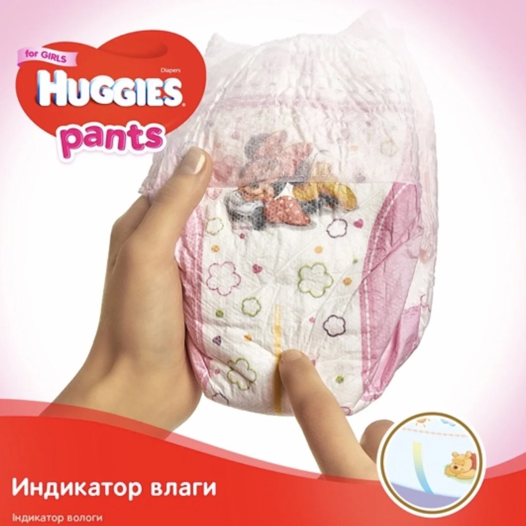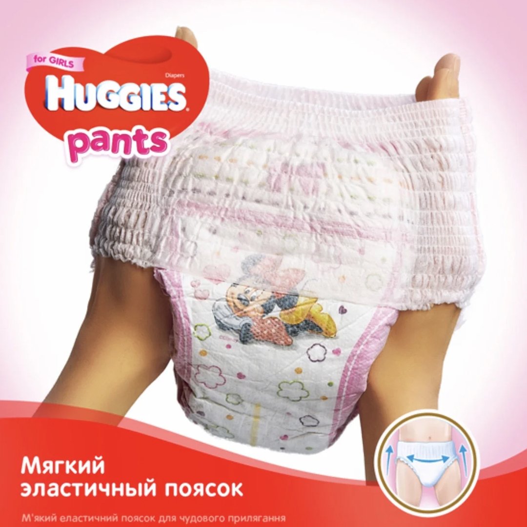 Трусики-підгузки Huggies Pants для дівчат розроблені з урахуванням анатомічних особливостей. Пояс і широкі боковинки тягнуться в усіх напрямках, еластичні манжети навколо ніжок призначені для більш щільного прилягання та необхідного комфорту в русі. Ви зможете швидко і легко надіти їх на дитину - як звичайні трусики. І так само легко зняти - потрібно просто розірвати боковинки. Індикатор вологи покаже, коли потрібно змінити підгузник. Симпатична Мінні Маус обов'язково сподобається вашій дівчинці і приверне її увагу.