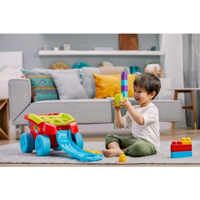 Вивчати форми з цим візком-каталкою від Mega Bloks дуже весело! Збирайте кубики до великого відсіку візка та тягніть за зручну ручку, щоб подорожувати та будувати вдома чи на прогулянці. Вкладаючи 6 різнокольорових формочок у відповідні отвори на панелі, дитина буде вивчати різні форми та навчатись сортувати! У наборі 25 кубиків.