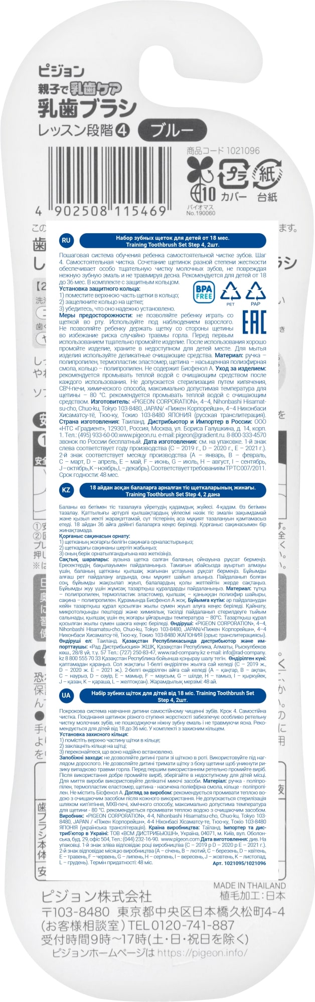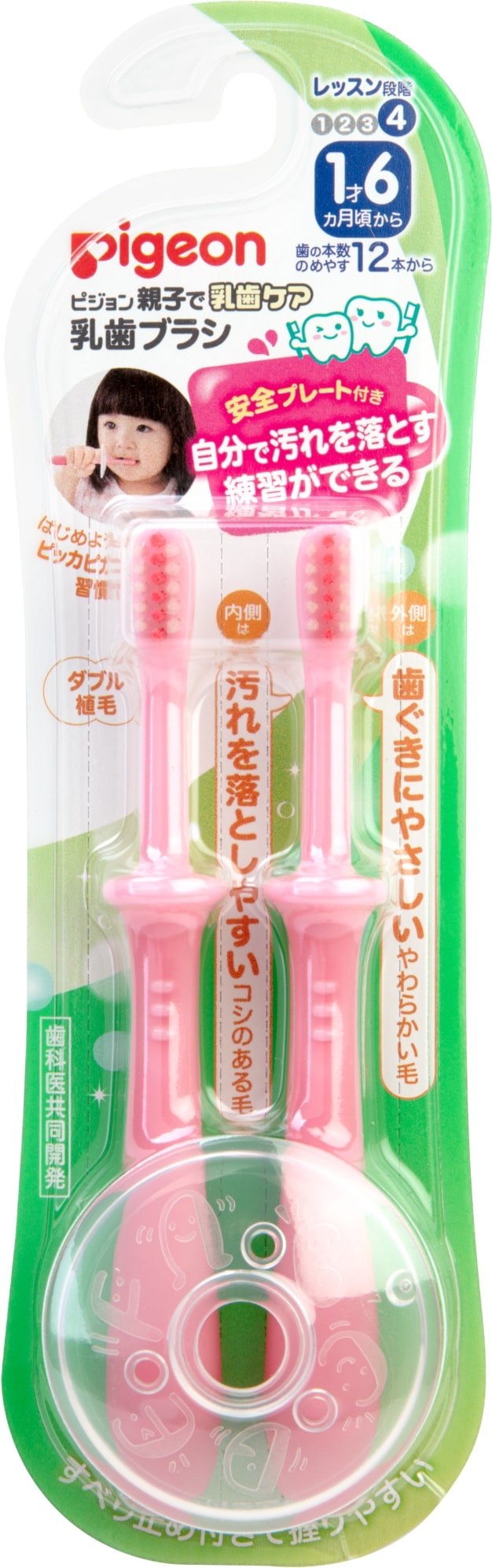 Зубні щіточки Pigeon — покрокова система навчання дитини самостійного чищення зубів із першого зубика. Кожен крок відповідає певному віку та розвитку малюка. Крок 4: самостійне чищення. Поєднання щетинок різного ступеня жорсткості забезпечує особливо ретельне чищення молочних зубів, не ушкоджуючи ніжну зубну емаль і не травмуючи ясна.