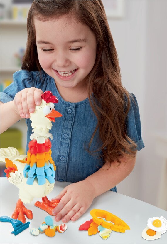 Набір стане прекрасним подарунком для дітей від 3-х років, які люблять домашніх тварин і ліплення. У комплекті: - 1 фігурка курочки, 2 форми 1 бритвений верстат, 4 баночки маси для ліплення Плей-До Характеристики продукту: - Наповніть шию курочки масою для ліплення і натисніть на її голову, щоб побачити, як ростуть пір'я! - Зробіть пір'я ще красивіше за допомогою спеціальної форми або використовуйте верстат, щоб поголити курочку! - Курочка видає забавне кудкудакання кожен раз, коли ви натискаєте на її голову - Зліпіть яєчко в спеціальній формі, помістіть його в таємне відділення на спині курочки, натисніть на її голову - і курочка відкладе яйце, весело кудахтая - 4 баночки у фермерському стилі з масою для ліплення різних кольорів.