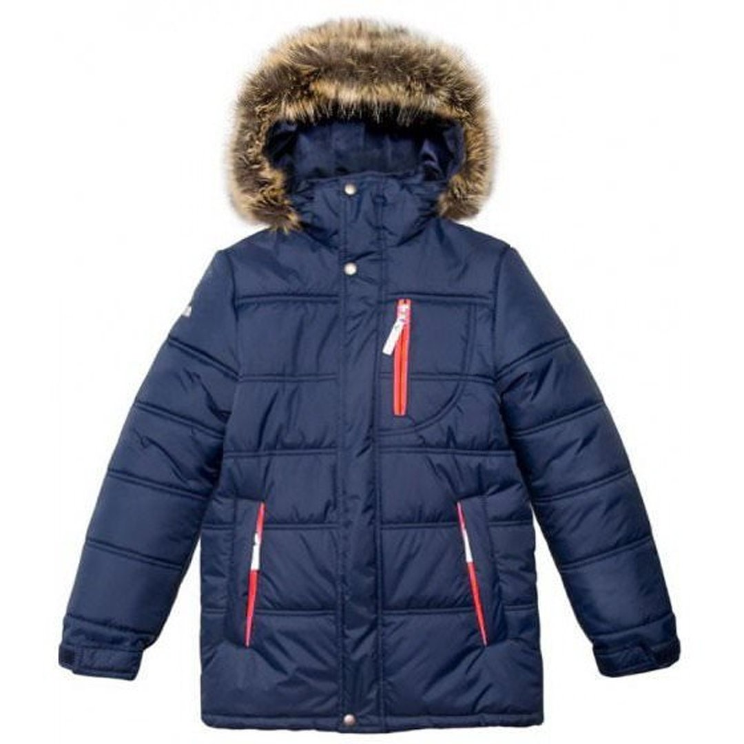 Однотонна темно-синя куртка-парка для хлопчика 11-12 років від естонського виробника LENNE. Розрахована на температурний режим до -30 С. Верх куртки - дихаюча, водонепроникна тканина Active, підкладка - 100% поліестер. Парка має знімний капюшон з одним шаром утеплювача, штучним хутром. Застібається на блискавку, закриту вітрозахисної планкою з кнопками і липучкою. Манжет рукава та низ куртки стягнуті резинкою. В капюшоні, на комірі та в рукавах - м'яка флісова підкладка. Ширина і обсяг куртки регулюються еластичним шнурком. Утеплювач - легкий та теплий IsoSoft - 330 г. Є світловідбивачі, дві врізні кишені на блискавках.