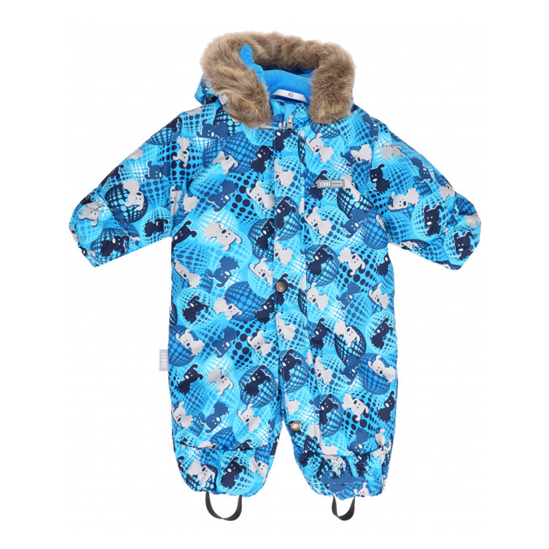 Комбінезон розрахований на температуру від 0 до -30 градусів, зріст 80 см. Колір - блакитний, синій, білий. Принт - звірята. Артикул 372793.