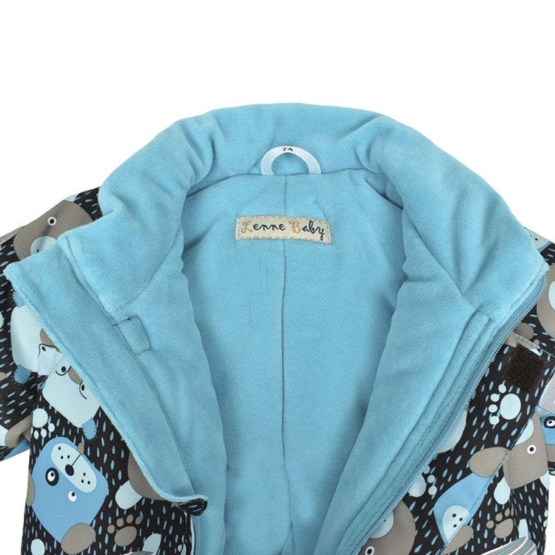 Суцільний теплий комбінезон для хлопчиків 3-6 місяців від відомого естонського бренду Lenne. Внутрішня частина коміру-стійки виготовлена з велюру. Утеплений капюшон відстібається. Підкладка - велюр. Сіре хутро на капюшоні пришите. Застібка-блискавка прикрита планкою. Манжети на рукавах стягнуті резинкою. Рукав закривається кишенькою. На штанинах теж є захисна кишенька.