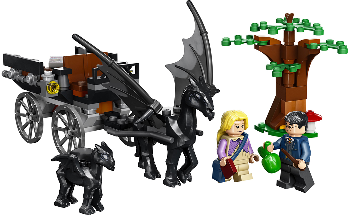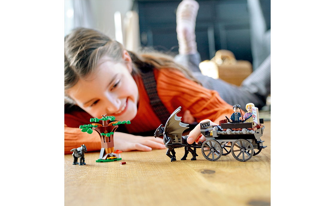 "Ти не збожеволів, я теж їх бачу. Ти такий же нормальний як і я." - Палумна Лавгуд. Ці слова сказала дівчинка Луна Гаррі Поттеру, коли він був дуже здивований, що бачить тестралів, адже він ніколи не бачив їх раніше. Тестрал - це чарівний крилатий кінь, його здатні бачити тільки ті, хто зазнав сильних переживань у своєму житті. Кінь цієї породи розумний і відданий, добре розуміє людську мову, досить добродушний, але при цьому небезпечний. Має гострі ікла, великі крила, довгий чорний хвіст. Місце проживання – Заборонений ліс біля школи Гоґвортс. Міністерство магії відносять фестралів до категорії "небезпечні тварини". Швидше відкривайте коробку конструктора LEGO Harry Potter Hogwarts™ Карета та Тестрали (76400), де всередині чарівні пригоди вже чекають на вас. Про набір У вас є унікальний шанс познайомитись особисто з чудовими кіньми – тестралами. У новому ігровому наборі LEGO Harry Potter Hogwarts™ Карета та Тестрали Хогвартсу (76400) представлені одразу два тестрали - дорослий кінь з можливістю піднімати та опускати крила та юний тестральчик зі складеними крильцями. Набір є збірною іграшкою для дітей від 7 років. Конструктор складається з: 121 елемента ЛЕГО; двох мініфігурок - Гаррі Поттер та Палумна Лавгуд; покрокової ілюстрованої інструкції зі збирання. Ігровий набір буде цікавий усім маленьким чарівникам, відьмам і навіть звичайним маглам. Кожен захоче скласти компанію Гаррі та Луні, коли у Забороненому Лісі вони знайдуть маленького і дорослого тестрала. У друзів із собою заготовлені ласощі для тварин - це м'ясо та яблуко. Нагодуйте чарівних коней разом з улюбленими героями. Діти натхненно збиратиму конструктор, відтворюватимуть культові сцени з фільму "Гаррі Поттер та Орден Фенікса", а також вигадуватимуть власні сценарії гри. Всі деталі та аксесуари ігрового набору створені на основі п'ятого фільму про Гаррі Поттера. Використовуючи безкоштовну мобільну програму LEGO Building Studies - ви разом з вашою дитиною зможете скрасити процес складання інтерактивними 3D інструкціями. Вам будуть доступні різні цікаві інструменти для повертання, масштабування, збереження свого прогресу та багато іншого. Карета для Гаррі та Місяця у зібраному вигляді має такі розміри: Висота – 9 см; Довжина – 17 см; Ширина – 6 см. Збирайте, грайте та демонструйте своїм друзям. Віз із тестралом доповнить колекцію кожного поттерамана. Збірна модель буде чудово виглядати як особливість інтер'єрного декору у вашому будинку. Ігровий набір LEGO Harry Potter Hogwarts™ Карета та Тестрали (76400) є частиною великої серії конструкторів ЛЕГО – LEGO Harry Potter. У кожному наборі серії є улюблені всіма персонажі, культові місця, відображені важливі сцени подій з кінофільмів. Комбінуйте набори ЛЕГО серії Гаррі Поттер із тими, що є у вас та тими, що є у ваших друзів. Запрошуйте друзів на веселі ігри та чарівні пригоди.