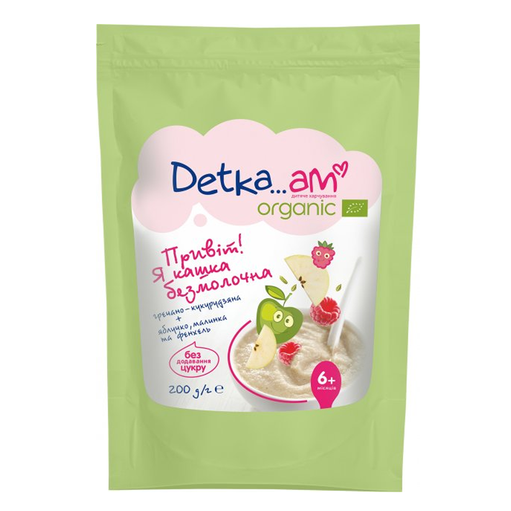 Безмолочная гречневая-кукурузная каша Detka Am Organic с малиной и фенхелем, 200 г (4820001521078)