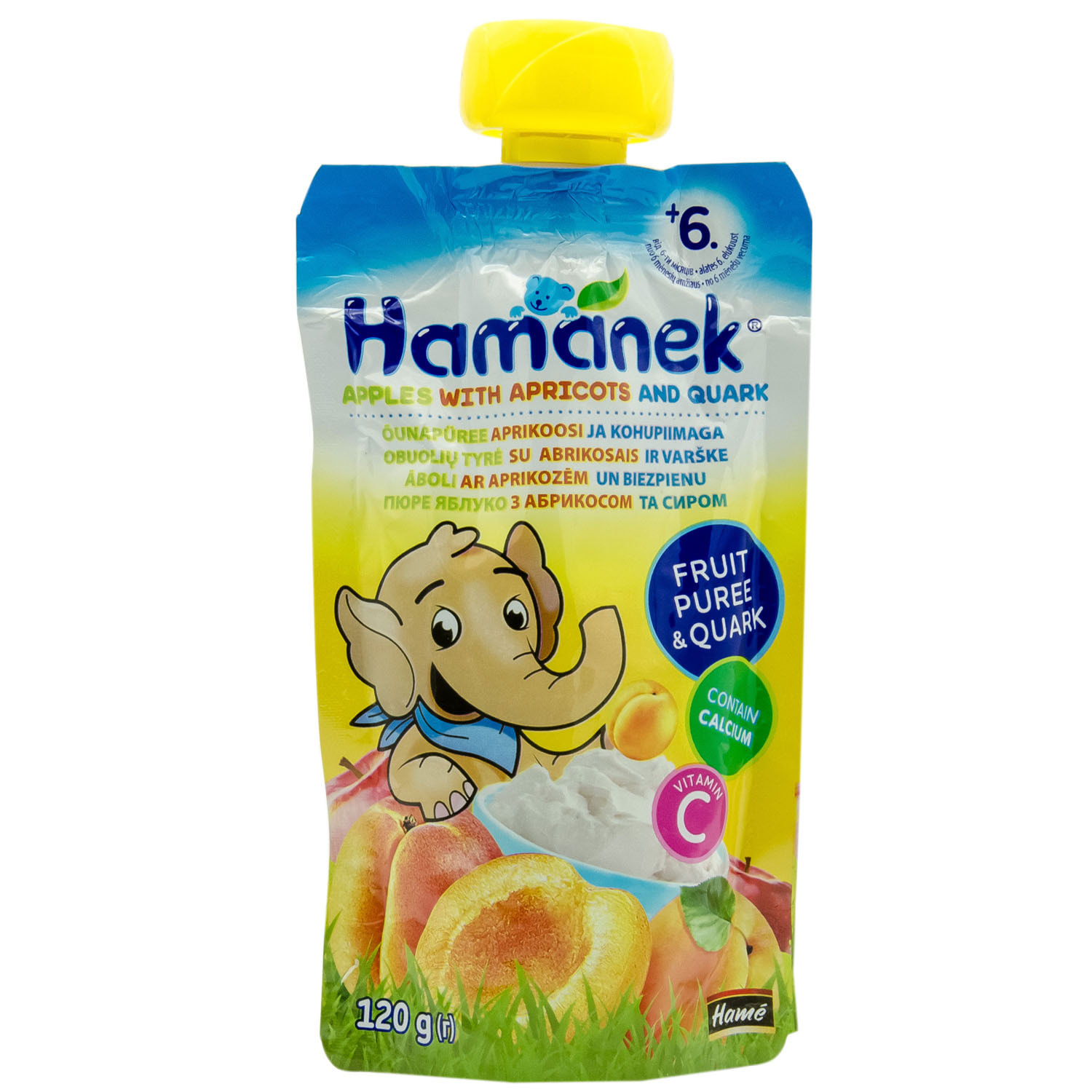 Фруктовое пюре Hamanek Яблоко с абрикосом и творогом, 120 г (8595139783921)