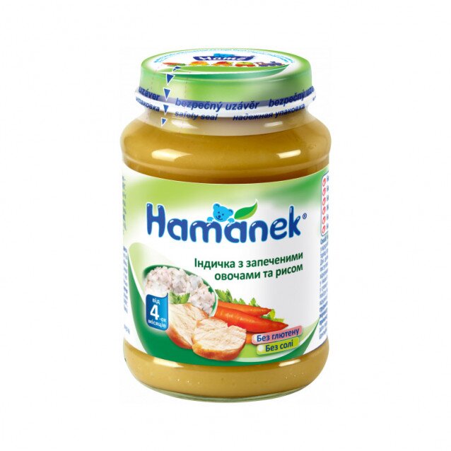 Пюре Hamanek Индейка с запеченными овощами и рисом, 190 г (8595139721602)