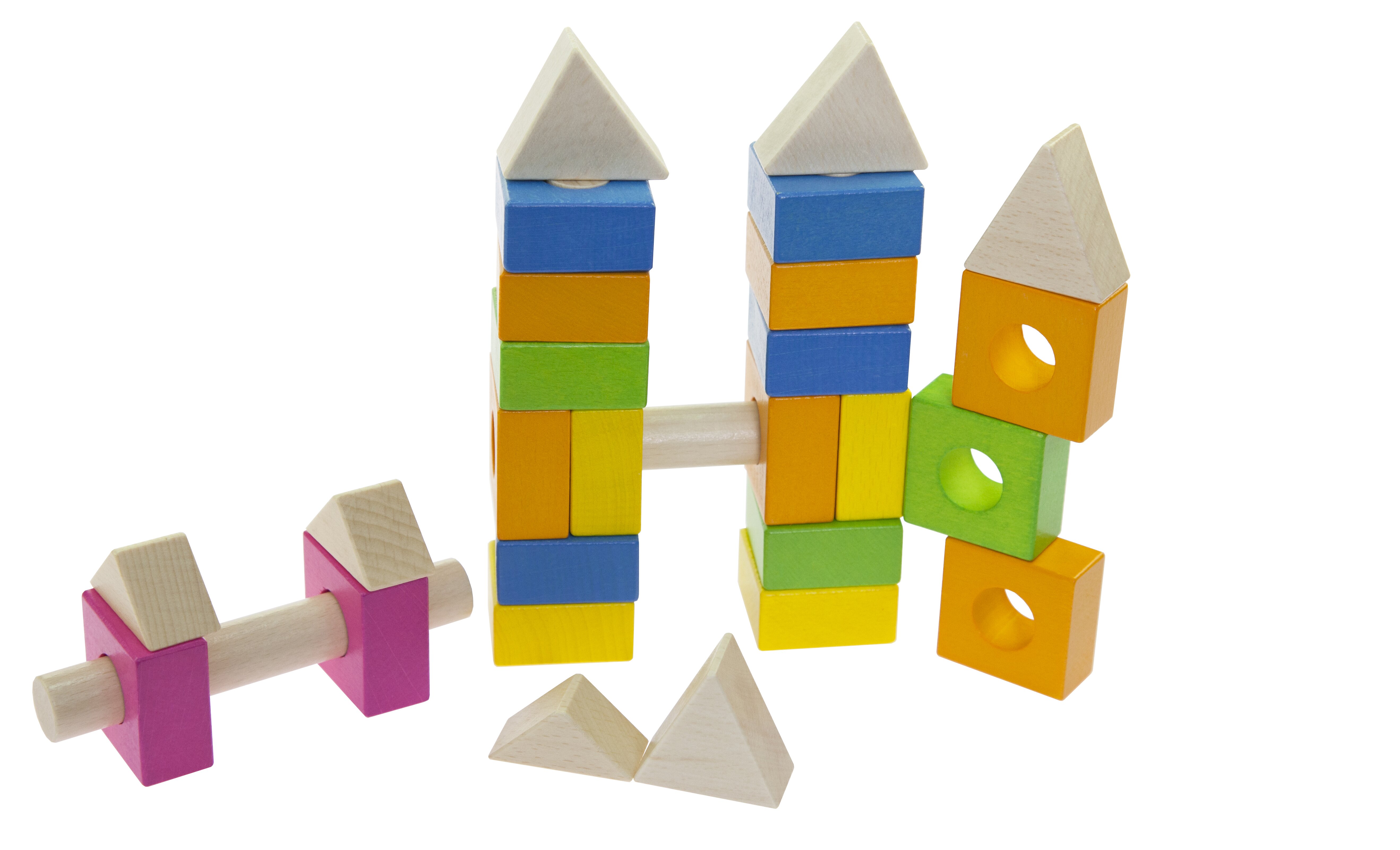 Блочные большие деревянные конструкторы представляют собой строительные наборы из разных по размеру и цвету объемных геометрических фигур. Из кубов, параллелепипедов, призм, пирамид, конусов, цилиндров можно складывать узоры, строить дома, ворота, башни и прочие архитектурные конструкции.