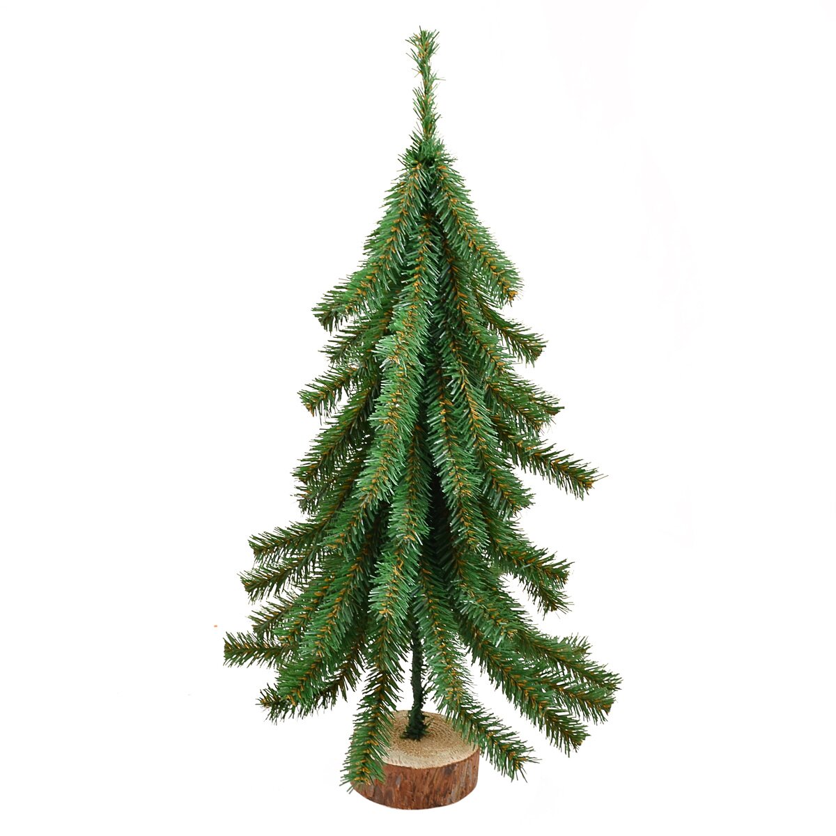 Искусственная маленькая ель – отличный декор для помещения в период новогодних праздников, который можно использовать, украшая множество поверхностей в доме, офисе, в торговых центрах. Поставь такую ель на столе, полке, тумбочке, на прилавке магазина, в прикассовой зоне – и праздничное настроение окружающим будет гарантировано. Компактность и качественное исполнение данного украшения – это и есть его главные преимущества. Материал: ПВХ-пленка шириной 4 см; проволока; деревянный пенек, обтянутый мешковиной. Высота: 60 см.