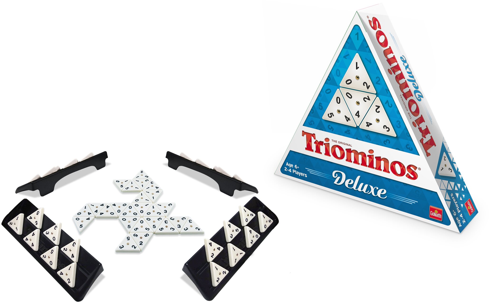 Настольная игра Goliath Triominos поможет юным игрокам развить память, стратегическое мышление, логику, навыки общения. Ну а взрослым «прокачать мозги» и получить долю позитива:) Если вы умеете играть в домино, значит уже знаете правила Triominos – фишки на поле нужно выставить таким образом, чтобы цифры на соединяемых гранях совпадали. Но не забывайте – цель игры заработать больше всего очков, а значит есть специальные комбинации, которые помогут в этом!