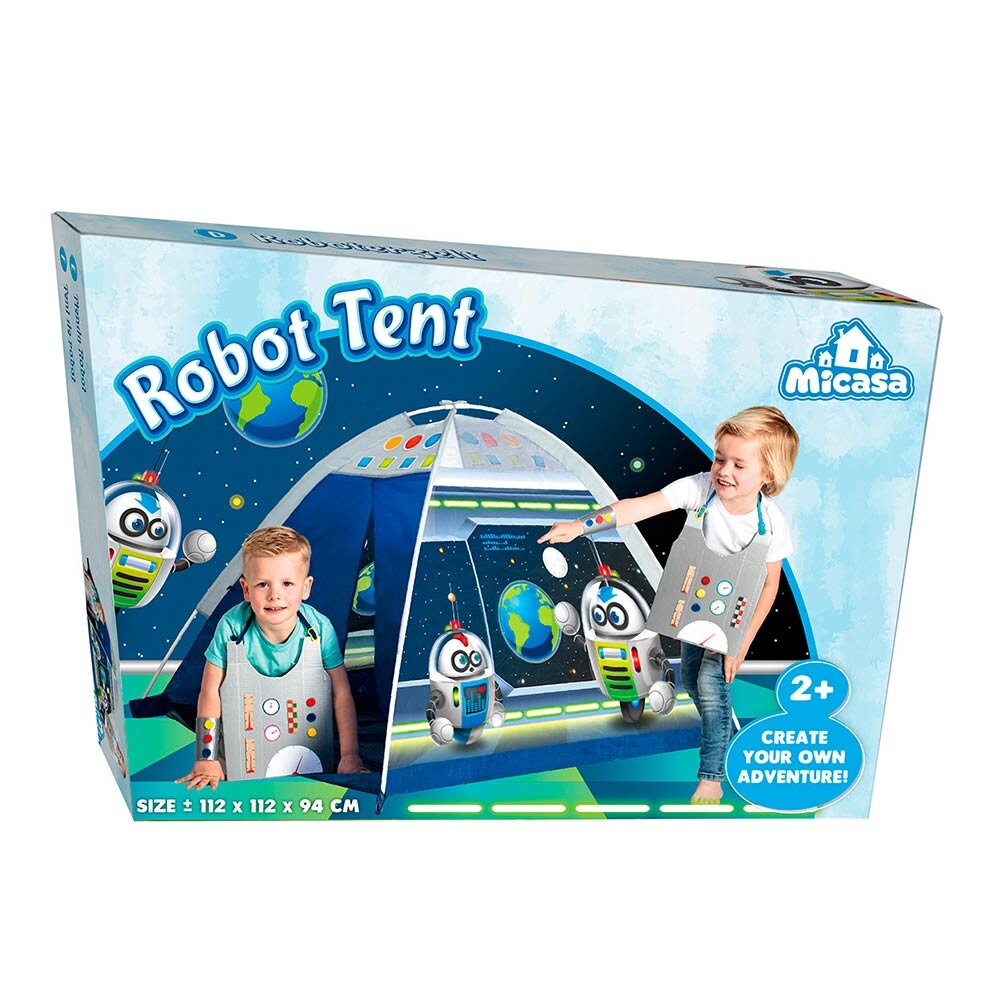 С яркой Палаткой Five stars Micasa Робот — игры вашего малыша станут еще более захватывающими! Собственный космический корабль, тайник для роботов и множество других сказочных сюжетов можно придумать, играя в нём. Выполнен в сине-серых цветах с изображением роботов. Можно играть как самому, так и пригласить друга в компанию.