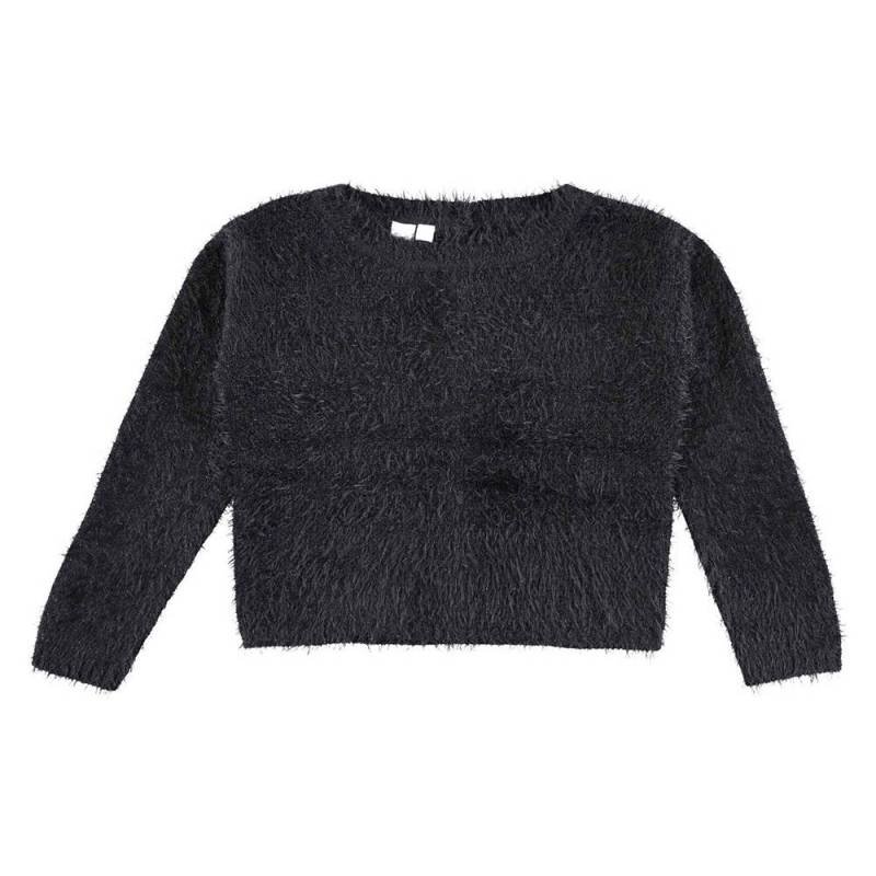 Теплый вязаный короткий свитер на каждый день. Сшитый из качественного черного трикотажа с мягким люрексом и имитацией меха. Имеет круглую горловину, длинные рукава. Застегивается на пуговицы на спинке. Состав: 64% нейлон, 31% акрил, 3% полиэстер, 2% металлизированное волокно. Детская одежда бренда iDO - это высокое европейское качество и лучшие модные тренды.