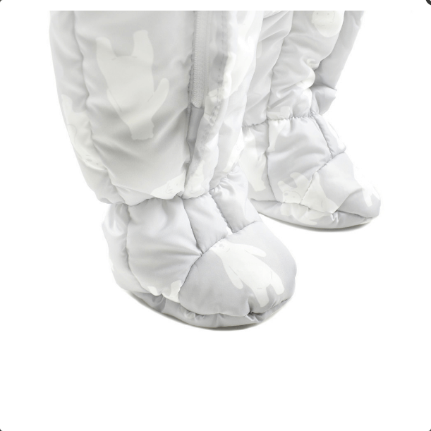 Замечательный утепленный комбинезон для малышей 6-9 месяцев на весну или осень. Имеет пришитый капюшон с резинкой, что обеспечивает плотное прилегание к детской головке. Благодаря двум молниям спереди, комбинезон легко и быстро надевается. Застежки прикрыты планками на кнопках. Рукава имеют плотные двойные трикотажные манжеты-резинки. Комбинезон пошит из полиэстеровой ткани с водоотталкивающим и ветронепроницаемым покрытием. Подкладка - однотонный трикотаж, 100% хлопок. Цвет - светло-серый. Принт - белые медведи.