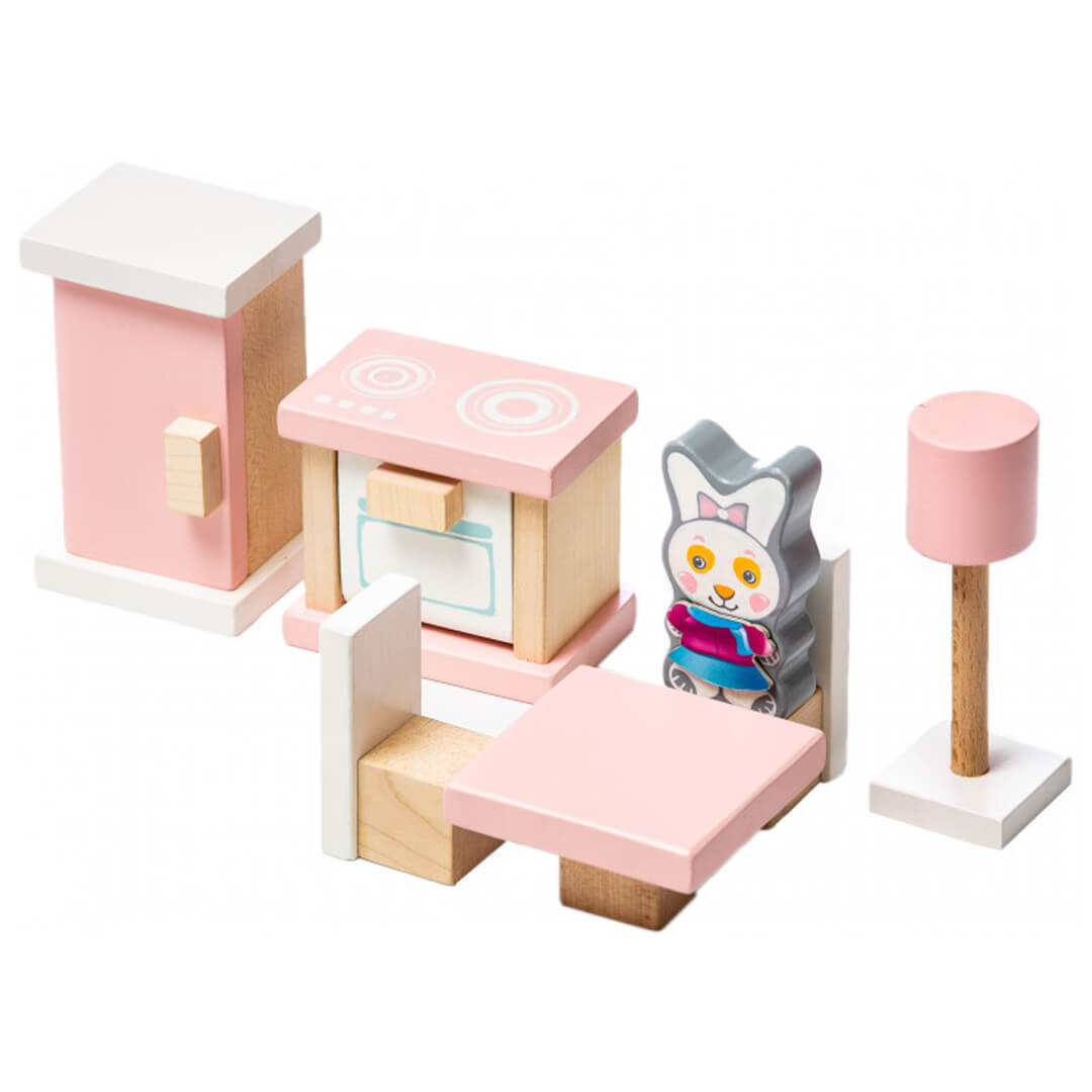 Экологичная развивающая игрушка от "Кубика" для первых сюжетно-ролевых игр. Изготовлена из безопасного, прочного, натурального материала - древесины. Покрыта красками на водной основе. В игровой набор входят предметы кухонного интерьера (стол, 2 стула, плита, холодильник, торшер), магнитная фигурка животного высотой 8 см, 3 комплекта магнитной одежды. Отличный подарок для девочек от 2 лет. Развивает мелкую моторику, пространственное мышление и социальные навыки.