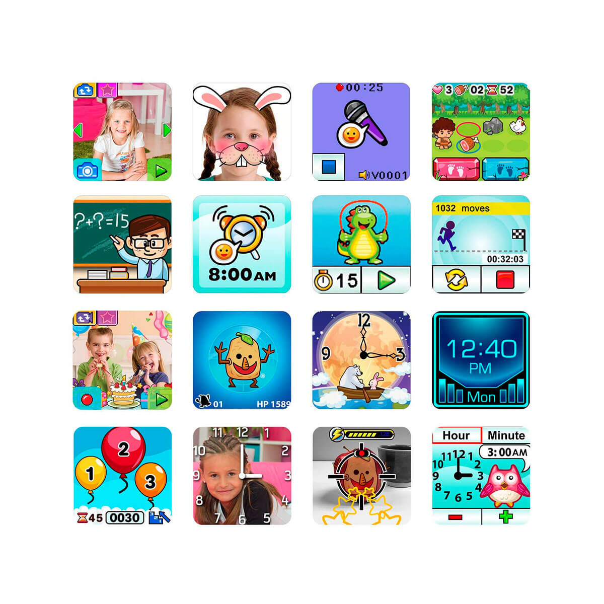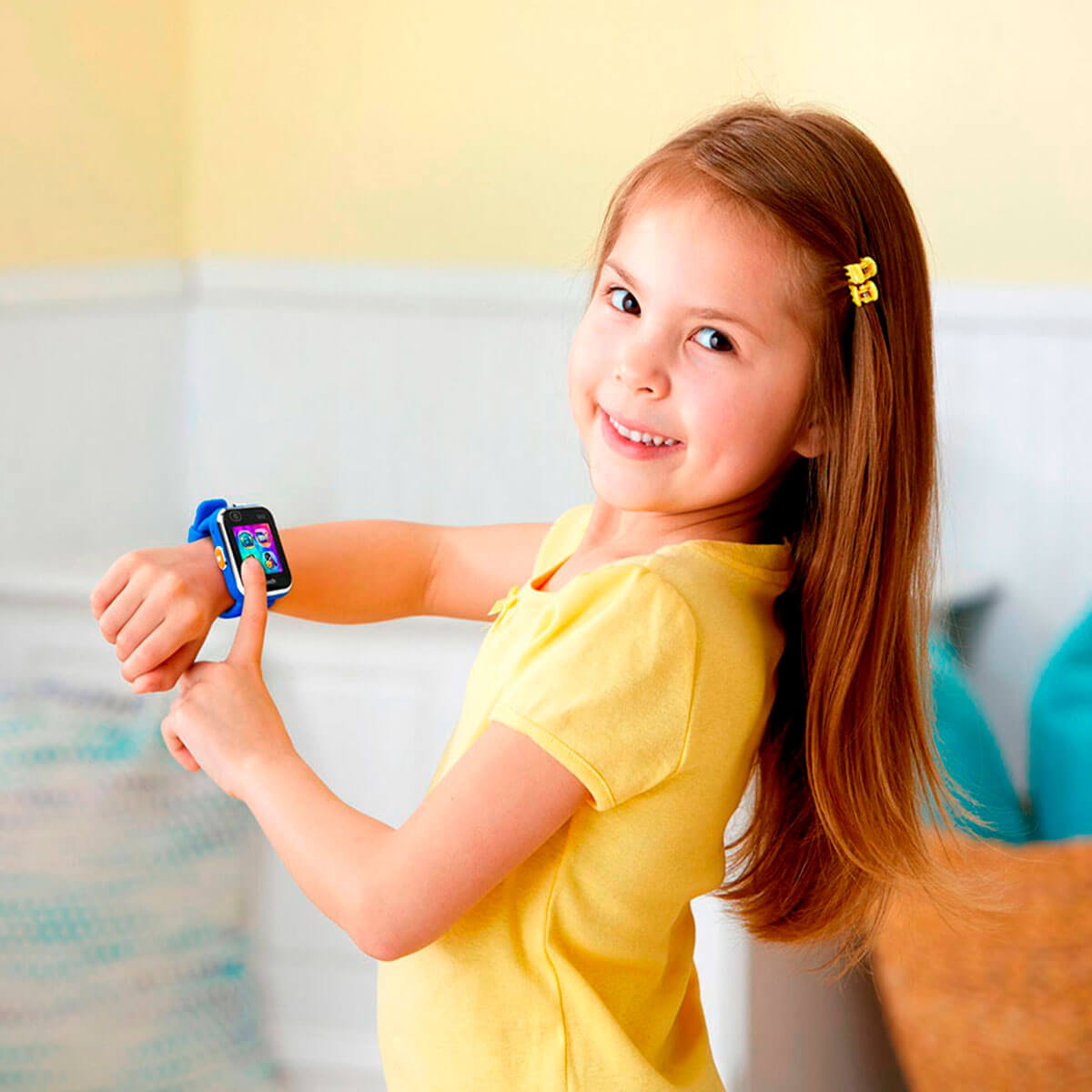 Смарт-часы KIDIZOOM SMART WATCH DX2 с расширенными функциями - уникальный наручные гаджет для детей! Особенностью этого умного аксессуара является наличие 2-х камер - фронтальной и боковой для фото- и видеосъемки. Они позволят ребенку снимать все, начиная с динамических видео и заканчивая селфи. Делайте фотографии, снимайте видео, записывайте аудио заметки, играйте во множество игр! У циферблата - 55 цифровых и аналоговых заставок. Детские часы имеют цветной сенсорный экран с диагональю 1,44 дюйма. Встроенная память 256 Мб. Предусмотрена возможность подключения к компьютеру с помощью Micro-USB. Есть фото и видеоэффекты, 5 эффектов для изменения голоса, 8 встроенных видео, приложения для подвижных игр и танцев, шагомер, будильник, игра Monster Catcher с дополненной реальностью, где вы можете захватывать монстров в реальном мире. Защита от брызг. Часы рекомендованы для детей от 4 лет.