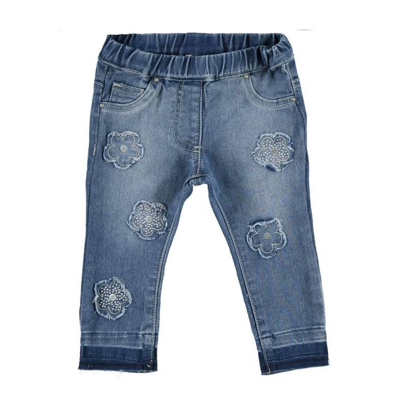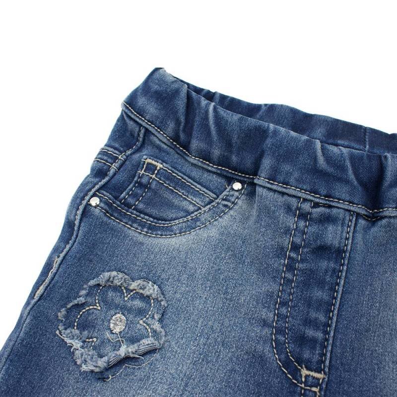 • Выцветшие джинсы с аппликацией в виде цветов с шипами для маленьких модниц. Пояс джинсов имеет мягкую эластичную резинку на талии, снизу необработанная кромка. Состав ткани: 78% хлопок, 21% полиэстер, 1% эластан. Детская одежда бренда iDO - это высокое европейское качество и лучшие модные тренды!