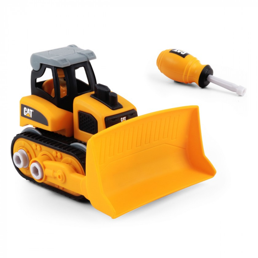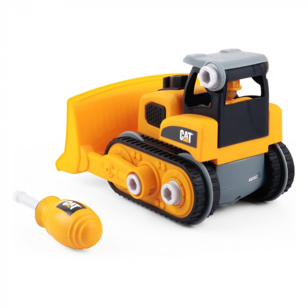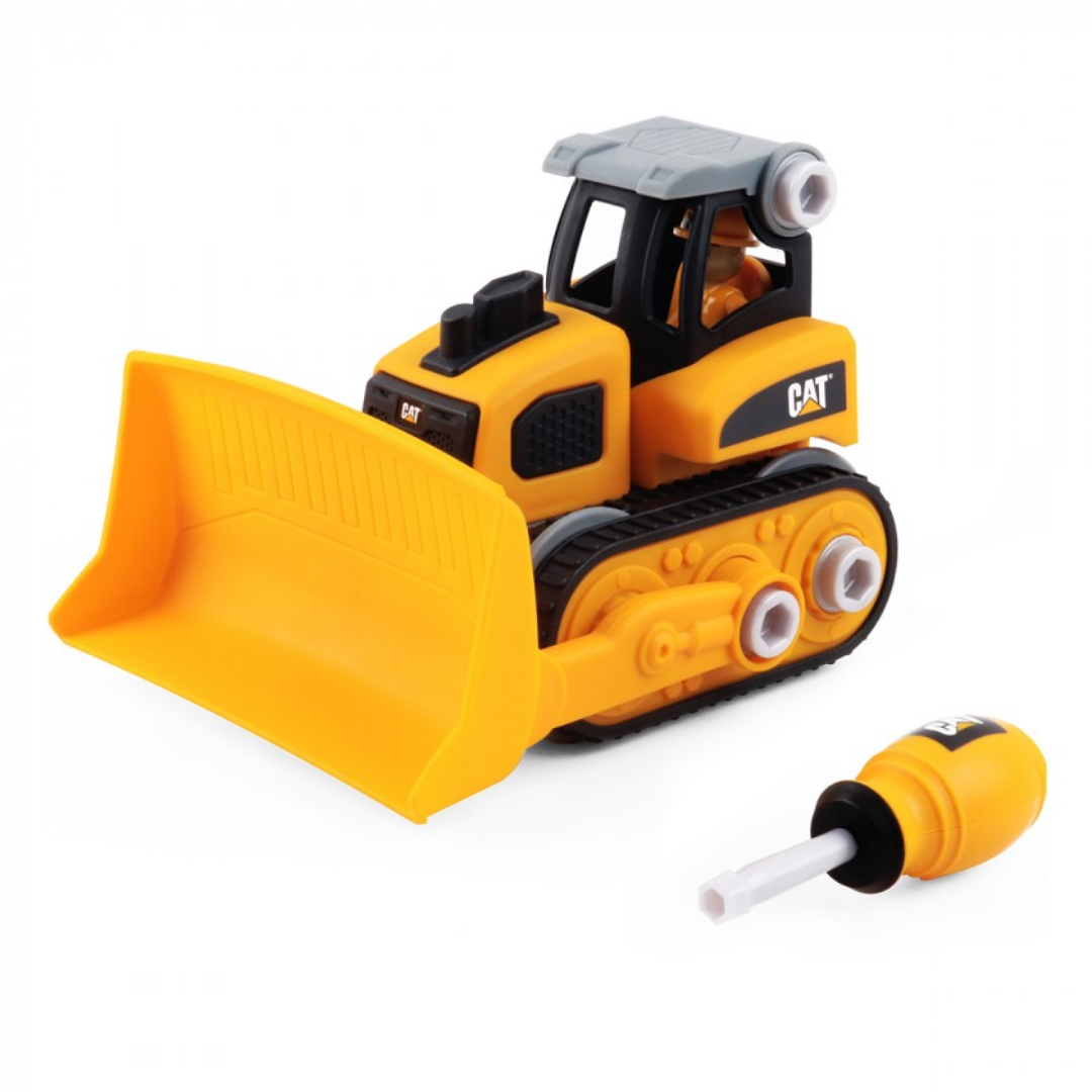 Знакомьте ребенка с миром транспорта с помощью разборных игрушек САТ. Конструктор Machine Maker создан для детей от 3-х лет. Малыш может самостоятельно разбирать и собирать бульдозер с помощью отвертки и больших шурупов, идущих в комплекте. Машинка является уменьшенной копией настоящего спецтранспорта Catepillar. Ее длина - 20 см. В готовый автомобиль можно посадить водителя и отправиться на работу - на стройплощадку. В конце дня бульдозер едет домой - в компактную коробку с ручкой. Игрушку можно брать на прогулку, в путешествие. Конструктор для детей развивает пространственное и логическое мышление, мелкую моторику. Артикул 796077.