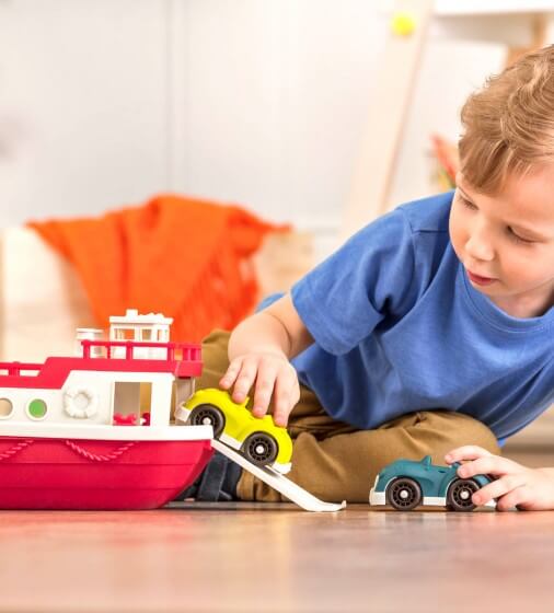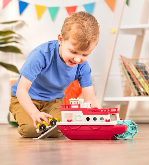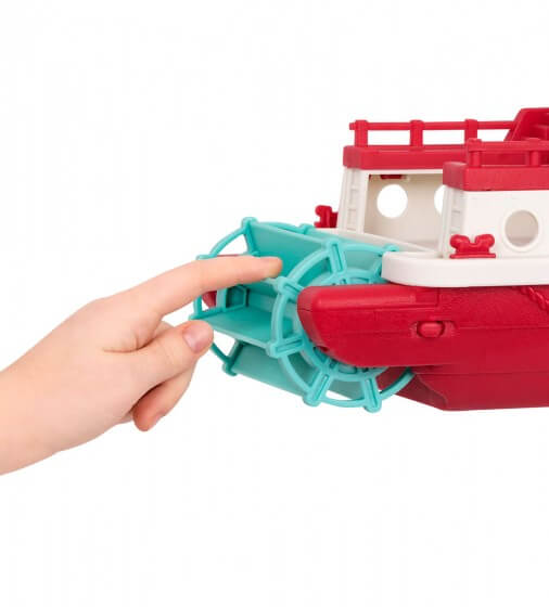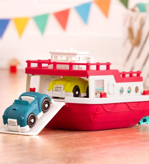 Большой корабль для самых маленьких! Паром с большим гребным колесом может перевозить в воде 2 яркие машинки, входящие в комплект. Подвижные части корабля позволят по-настоящему имитировать загрузку и выгрузку груза, делая игру еще более увлекательной. Игровой набор "Паром" поможет в развитии воображения, эмоционального восприятия. Игрушки для малышей Battat: "Будь летним! Будь заметным! Лети, плыви, путешествуй!" Размер упаковки: 34х20х18 см. Рекомендовано для детей в возрасте 1 года.