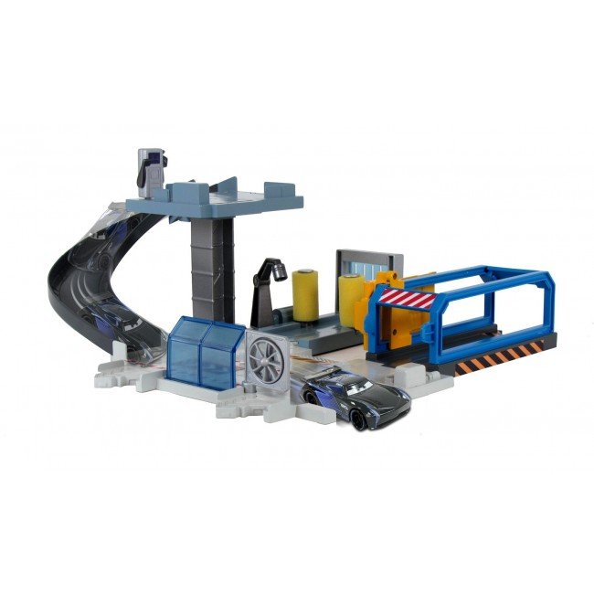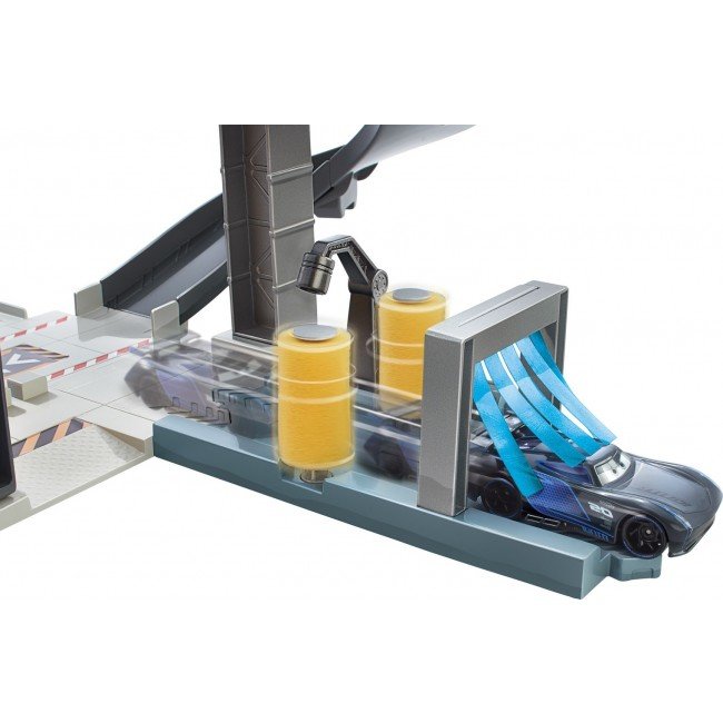 Отправь Джексона в центр подготовки профессиональных гонщиков! В этом 2-этажном тренировочном центре есть несколько игровых зон. На первом этаже ты можешь заехать на автомойку, протестировать двигатель и проверить свою выносливость в аэродинамической трубе. На втором этаже, на который можно подняться на лифте, ты найдешь заправочную станцию. Когда гонщик проедет все зоны и будет полностью готов к соревнованиям, отправь его в гонку по крутому спуску вниз. 1 машинка-герой Джексона Шторма в наборе.