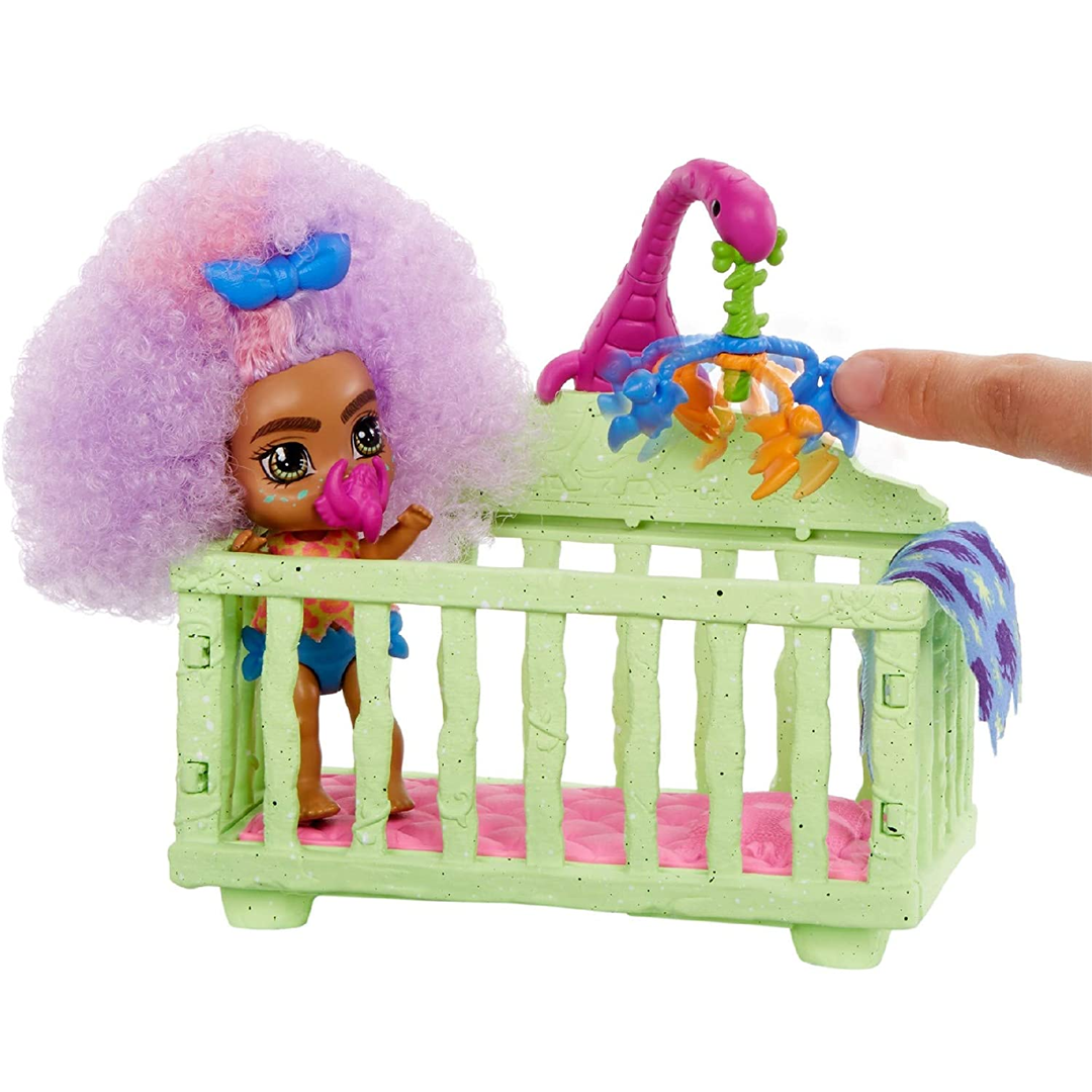 Встречайте Cave Club - команду доисторических героев-бунтарей, опережающих свое время! Куклы Cave Club олицетворяют эпические приключения пещерных людей! У них дикие прически и яркие неоновые образы. Фернесса, первая няня, обожает ухаживать за пещерными малышами, но Фурра действительно держит в тонусе! Кукла Фернесса имеет всё, что может понадобиться няне, в наборе есть кроватка с тематическим динозавровым мобиле, которое действительно крутится и помогает засыпать. Когда время сна заканчивается, прикрепите Фурру на седло ее дино-лошадки и подтолкните качалку! Милые аксессуары помогают еще больше окунуться в историю игрового набора "Детская комната". Дети в возрасте от 4 лет могут разыгрывать приключения со своим любимым доисторическим героем или героиней, или они могут собрать их все, чтобы придумать интересную историю со всей командой!