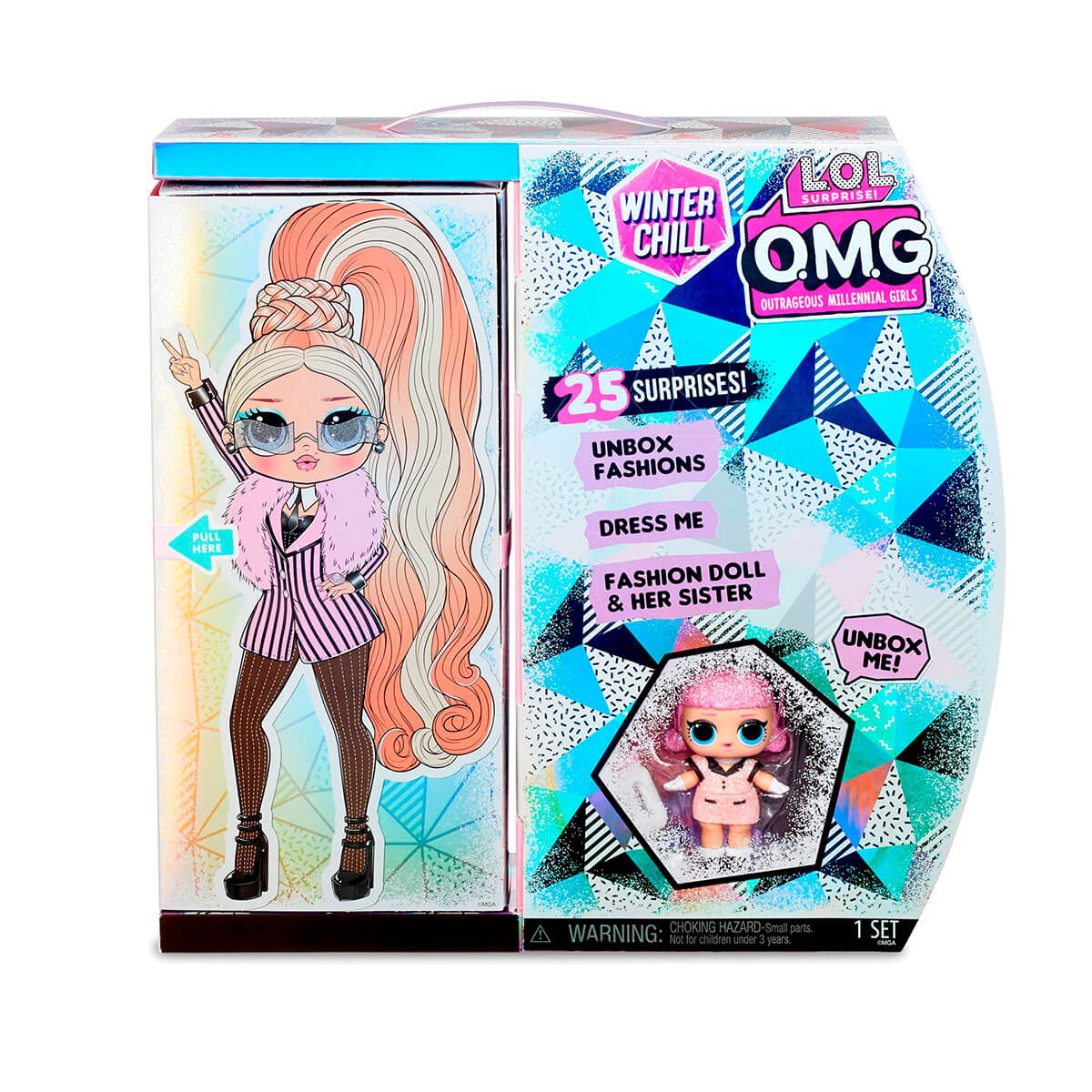 В игровой набор входит: модная кукла LOL Surprise! серии OMG Winter Chill Леди-Стайл, сестричка LOL Surprise, одежда для куклы, обувь с коробкой, вешалки для одежды, расческа для волос, чехлы для одежды, подставка для куклы, аксессуары, коробка-гардероб. Соберите все 4 модные куклы LOL Surprise! серии OMG Winter Chill!