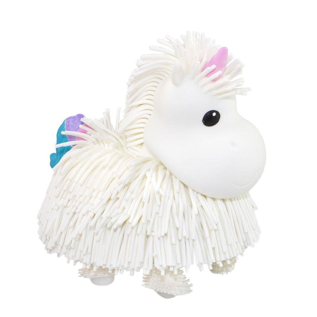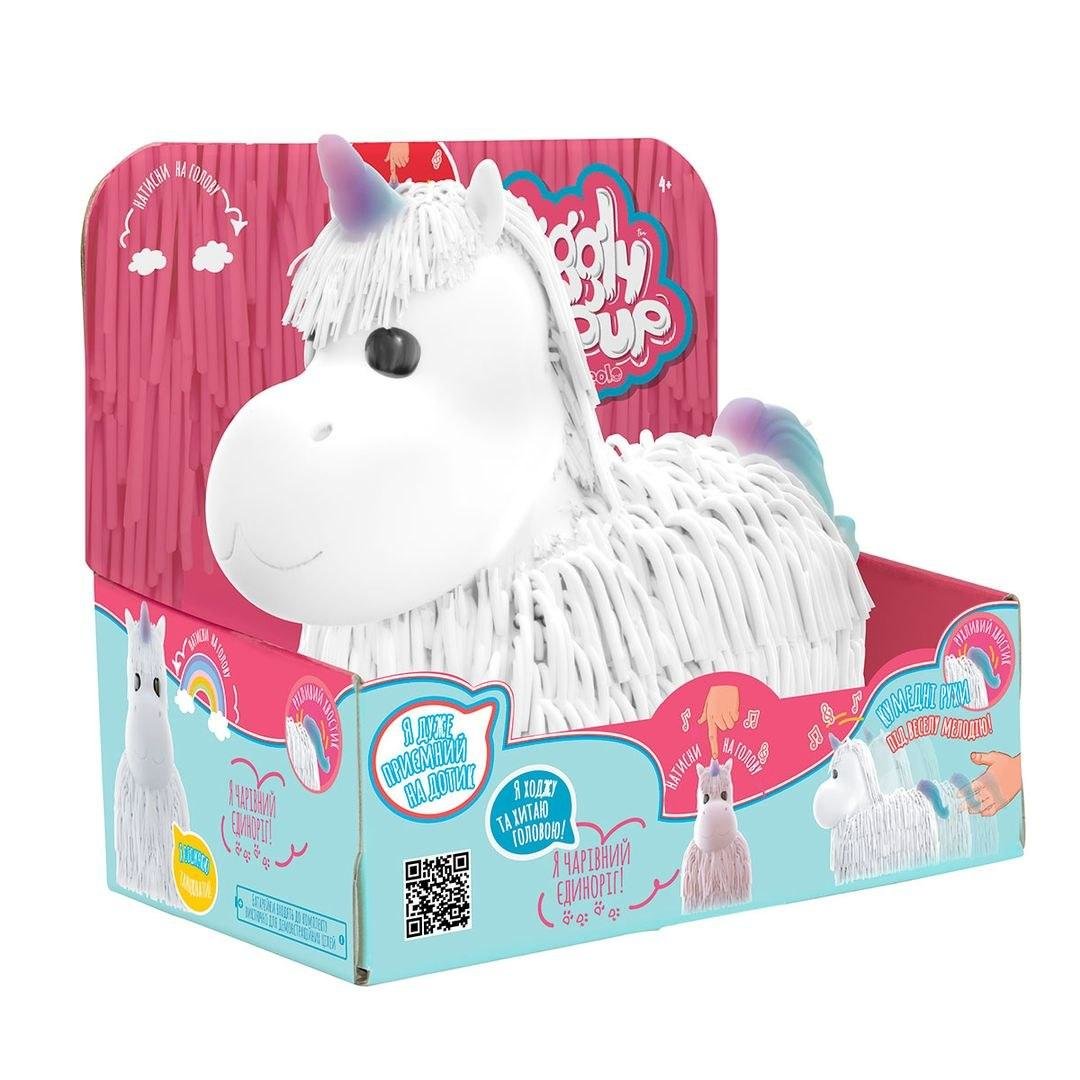Подарите малышу сказочное существо - Волшебного единорога Jiggly Pup. Интерактивное животное станет любимым другом вашего ребенка. Оно понравится как мальчику, так и девочке в возрасте от 4 до 8 лет. Если нажать на головку милой лошадки, в режиме try me зазвучит мелодия. Единорог пошагает вперед, заржет, пошевелит хвостиком и помашет головой. У животного приятная на ощупь шерсть из эластичного белого полимера. Игрушка весит 556 г, питается от 2 батареек АА, входящих в комплект. Развивает воображение, тактильные ощущения, эмпатию. Артикул 797798.