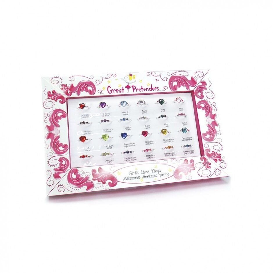 Канадский бренд Great Pretenders представляет новинку на рынке Украины — набор колец с камнями рождения. В ассортименте 12 видов колечек — по одному на каждый месяц. Кольца отличаются цветом камня и выполнены в двух формах — в виде сердца и короны. Кольцо с камнем рождения подходит для девочек возрастом от трех лет и старше, их размер регулируется, а это значит — оно подойдет каждой девочке. Украшения Great Pretenders не содержат драгоценных и полудрагоценных металлов и выполнены из качественных материалов: