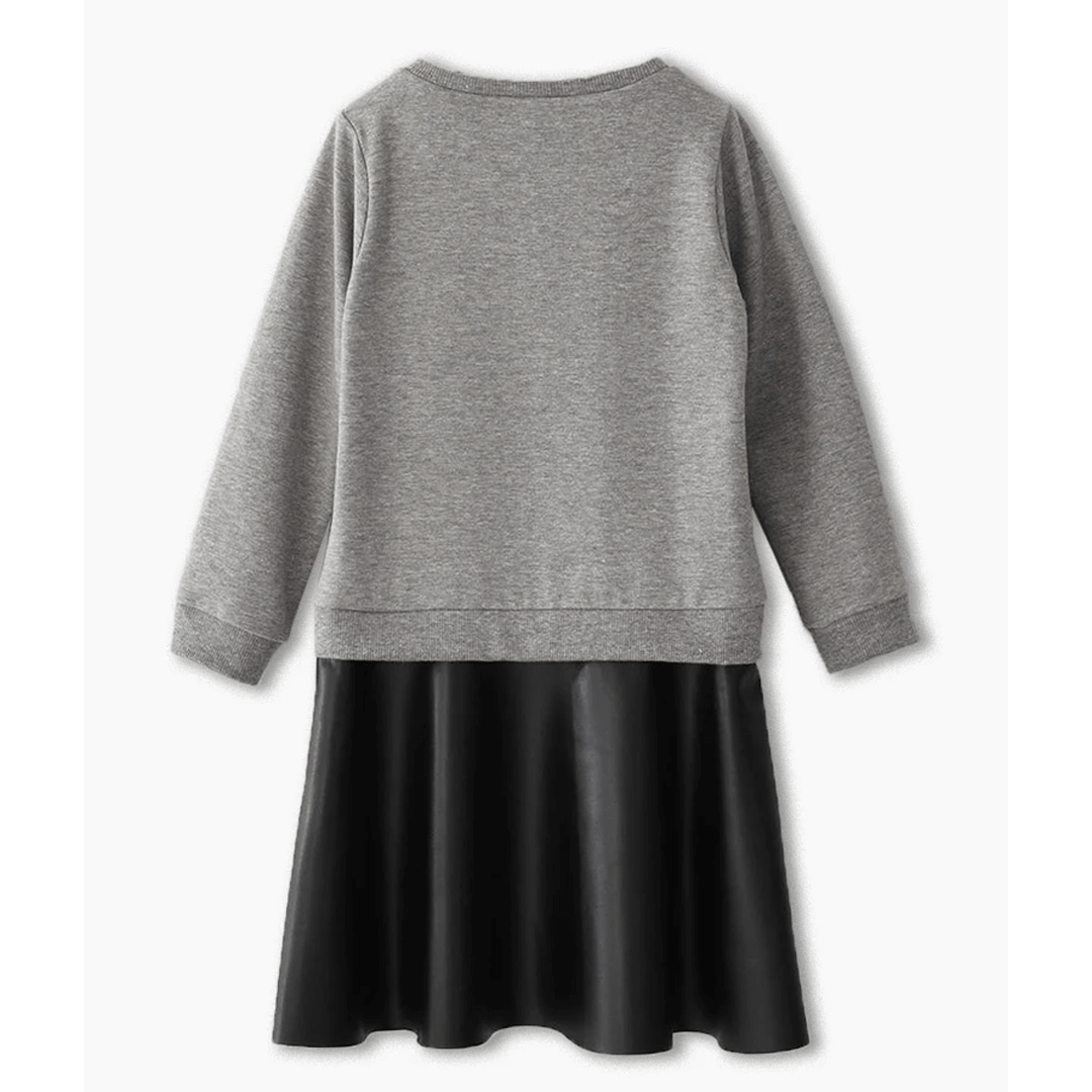 Оригинальное теплое платье свободного кроя для девочек 10 лет. Трикотажный верх изделия - серый, в виде пуловера с вырезом "лодочка" и слегка укороченными рукавами. На груди платье украшает надпись ROCK из черного кожзама, серебристых и золотых пайеток. Низ похож на юбку в сборку из искусственной черной кожи. Длина - миди. Детская одежда бренда iDO - это высокое европейское качество и лучшие модные тренды! Состав: 58% хлопок, 38% полиэстер, 4% эластан.