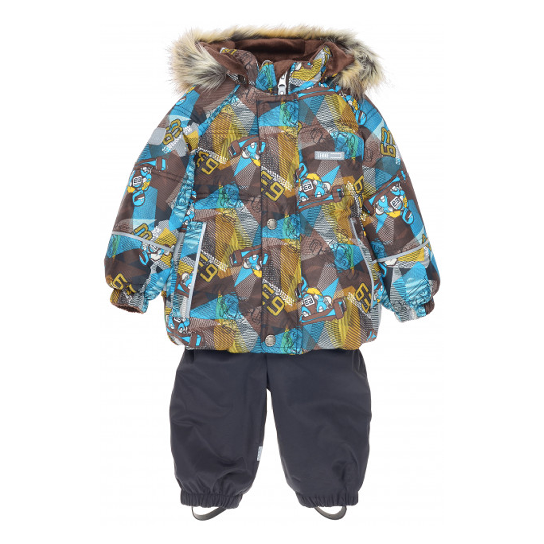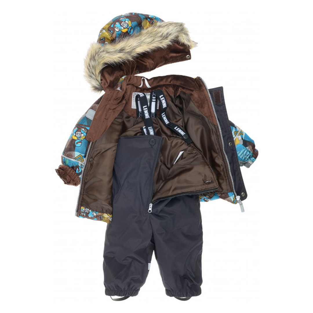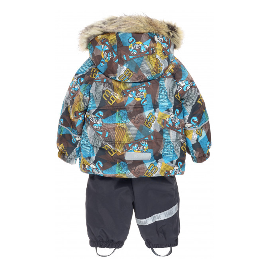 Теплый зимний комплект для мальчика 1,5-2 лет от известного эстонский бренда Lenne. Комплект состоит из разноцветной куртки и темного однотонного полукомбинезона. Куртка имеет теплый, отделанный мехом съемный капюшон, который застегивается с помощью липучек. От ветра шею ребенка прикрывает приятный на ощупь велюровый воротник. Из велюра сделана подкладка в капюшоне. По низу рукавов и брюк есть вшитая резинка. Куртка имеет 2 вшитых кармана. У полукомбинезона есть подтяжки, длина которых регулируется. Внизу на брюках - штрипки для обуви. Есть светоотражающие элементы. Все модели "Ленне" практичны в эксплуатации, так как сшиты из высокотехнологичной ткани Active. Это полиамидный материал с воздухопроницаемой, грязе- и водоотталкивающей способностью. Зимний комбинезон утеплен IsoSoft. Теплоизолирующая структура состоит из множества тончайших волокон, благодаря которым изделие имеет отличные теплозащитные свойства. Несмотря на тонкость, утеплитель очень теплый и износостойкий. Верхняя одежда с изософт - легкая, мягкая, компактная и комфортная. Комплект рассчитан на рост 86 см. Цвет - коричневый, желтый, голубой. Принт - гонка.