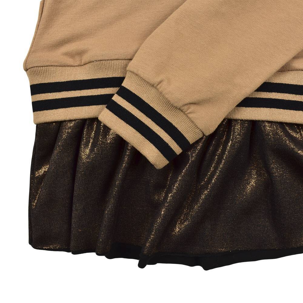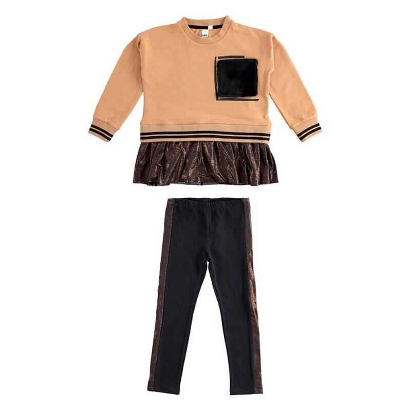 • Симпатичный костюм от IDO состоит из двух деталей: туники и леггинсов из плотного трикотажного хлопка. Туника декорирована карманом из искусственного меха и воланом внизу. Манжеты на рукавах и низ - двойная полосатая трикотажная резинка. Леггинсы с поясом на талии с внутренней резинкой. По бокам леггинсы украшает цветная полоска, которая сочетается с воланом. Состав туники  - 95% хлопок, 5% эластан, леггинсов - 93% хлопок, 7% эластан. Детская одежда бренда iDO - это высокое европейское качество и лучшие модные тренды.