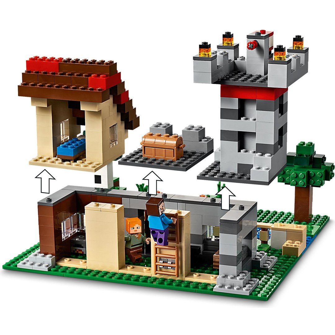 Отправляйтесь на поиски приключений с героями LEGO Minecraft! Набор создан по мотивам популярной в 10-х годах компьютерной игры. Предназначен для детей старше 8 лет. Включает 564 блока, из которых можно построить замок или ферму. Игрушка продумана до мелочей, отличается высоким уровнем детализации и ярким дизайном. В набор входят фигурки Стива, Алекса, Крипера, свиньи и зомби. В высоту ферма достигает 16 см, в длину и ширину по 26 см. Габариты замка - 18 х 26 х 27 см соответственно. Конструктор развивает навыки строительства и фантазию. Пусть юный почитатель мира “Майнкрафт” представит, как Алекс и Стив разводят свиней на ферме или борются с Крипером и зомби в замке. Артикул 124492.
