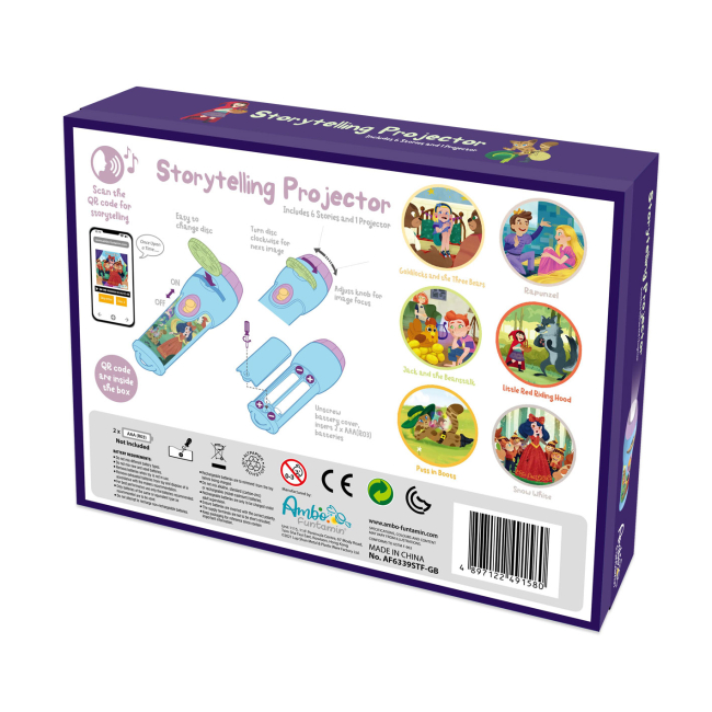 Набор включает в себя специальный проектор, который оживляет сказки, создавая волшебные иллюстрации на стенах комнаты. Это погружает детей в уникальную атмосферу сказочного мира, делая их участниками самых ярких событий.