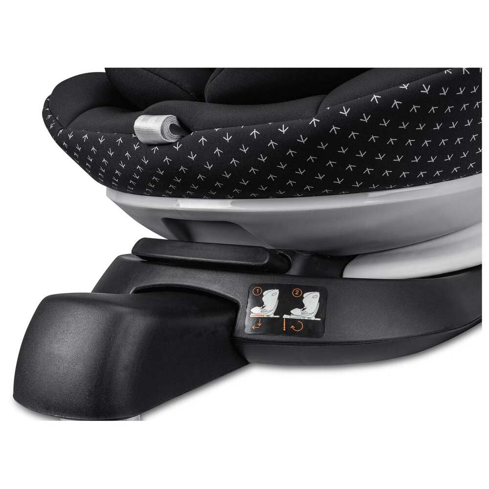 Монтаж осуществляется с помощью Isofix и опорной стойки. Индикаторы Isofix показывают правильную установку — зелёный цвет означает корректную фиксацию. Использование возможно только в автомобилях с Isofix и i-Size-совместимыми сиденьями.