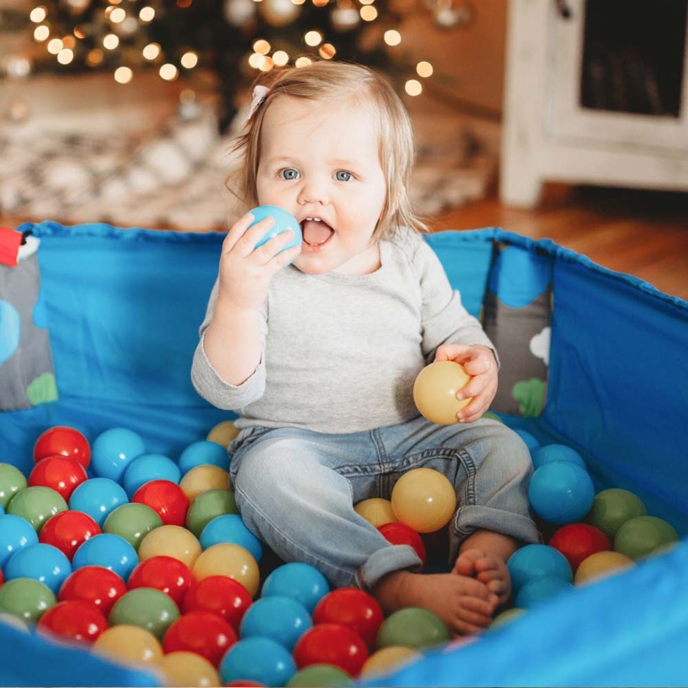 Игровой центр 3-в-1 позволяет малышам начать сенсорные игры уже с 10 месяцев благодаря сухому бассейну. По мере роста ребёнка центр легко трансформируется в двухэтапный батут для активных прыжков и освоения самостоятельного движения.