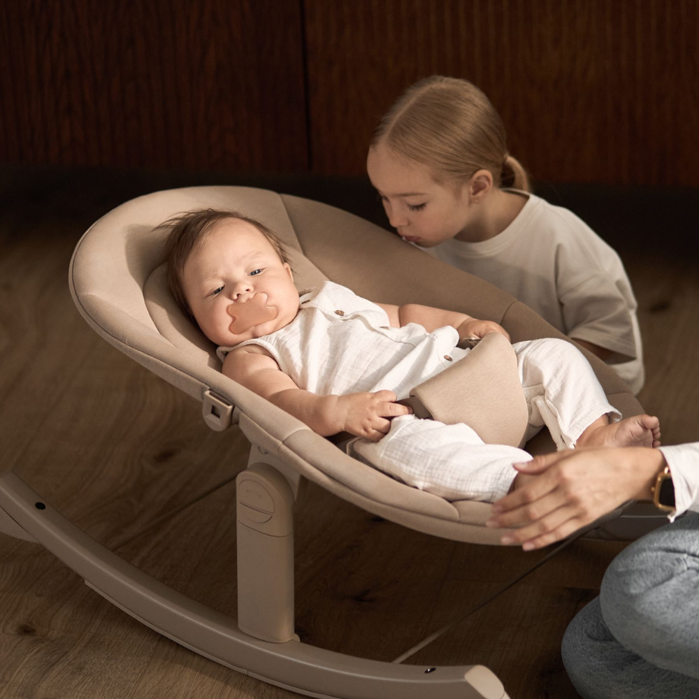 Обеспечивает мягкое, успокаивающее покачивание, когда ребёнку необходим легкий ритм, и остаётся неподвижной, когда малыш отдыхает. Настраивается в зависимости от потребностей — для максимального уюта и спокойствия.