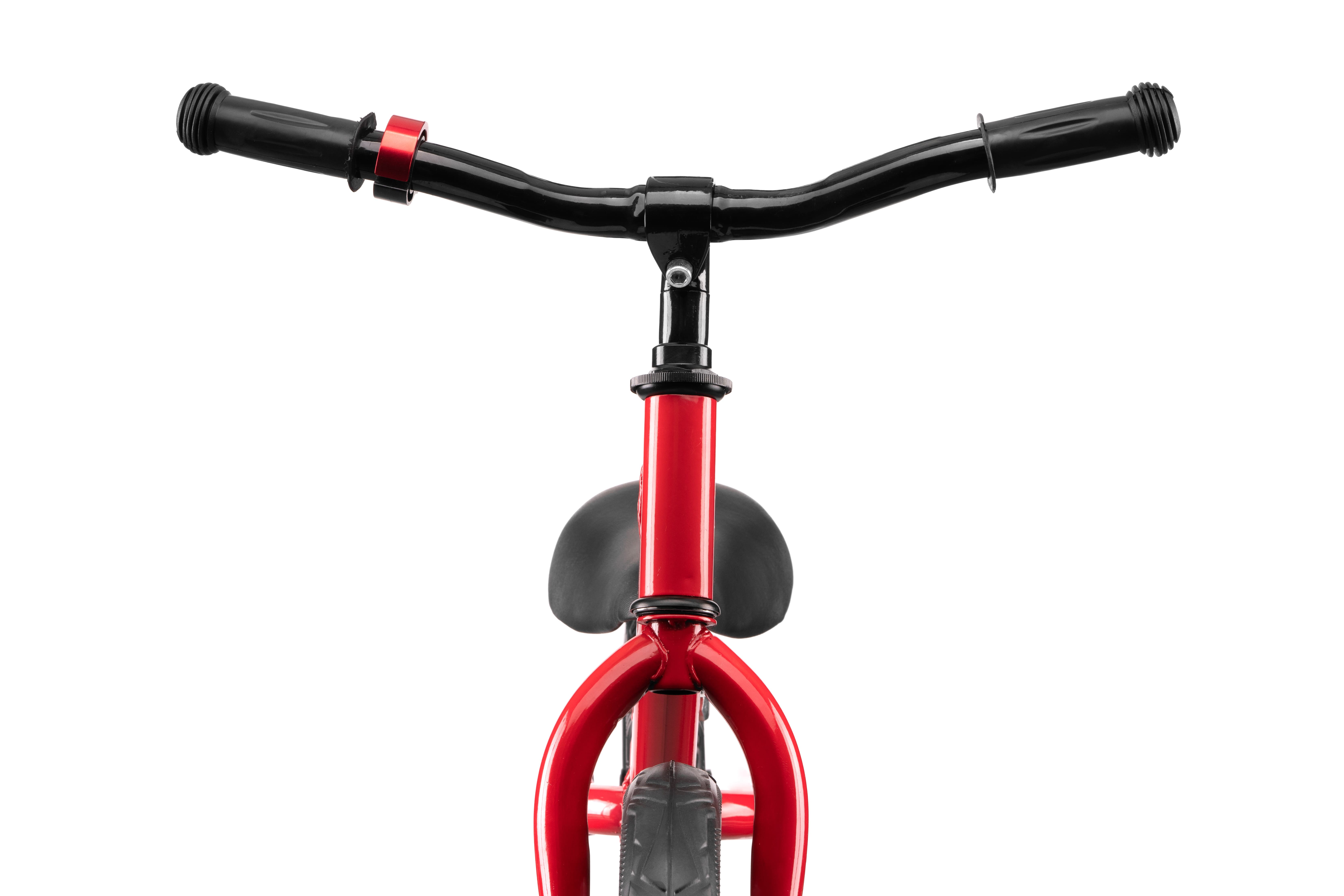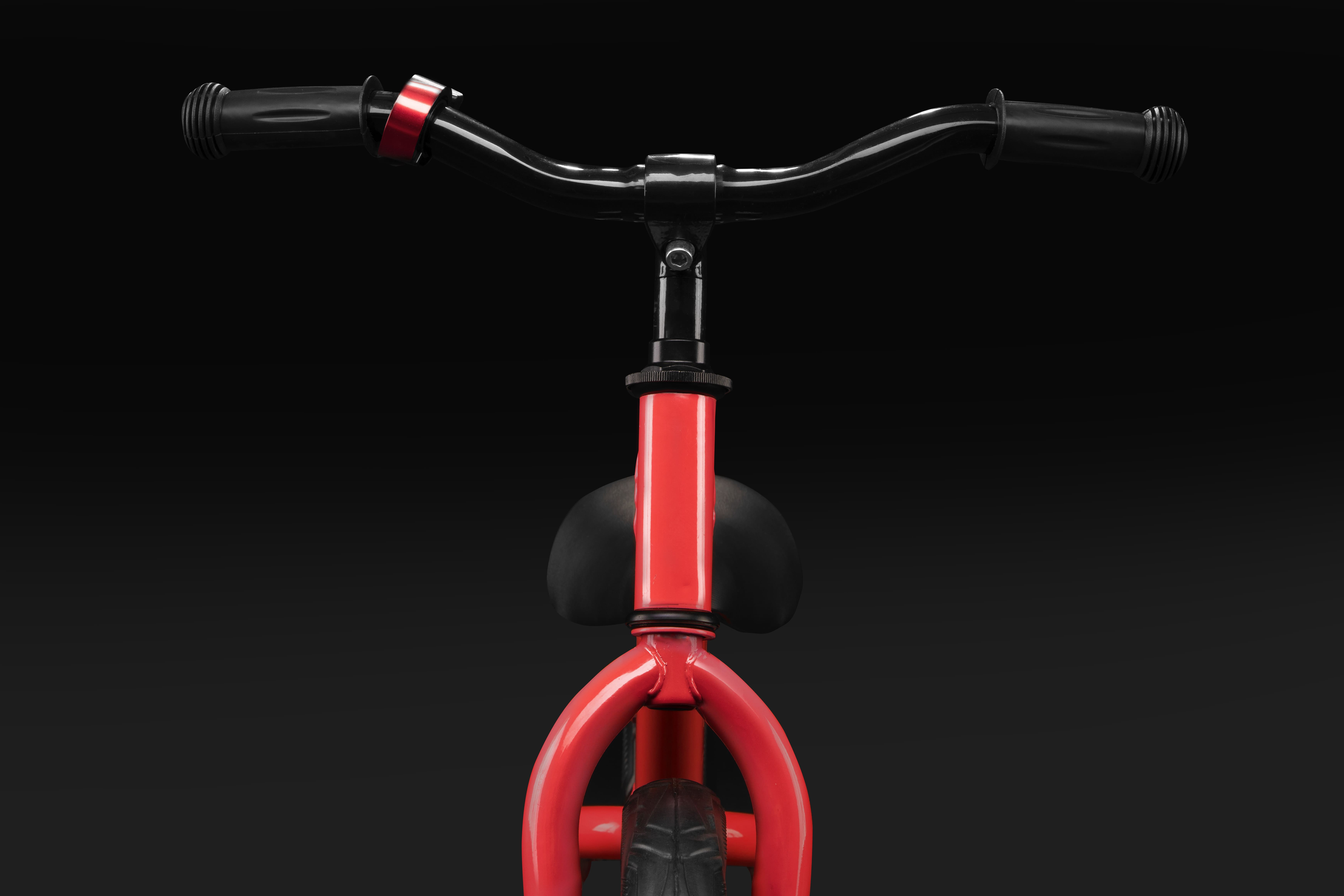За комфорт отвечают широкое сидение, руль с регулируемым углом наклона, а также стильный звоночек поставляемый в комплекте с беговелом.