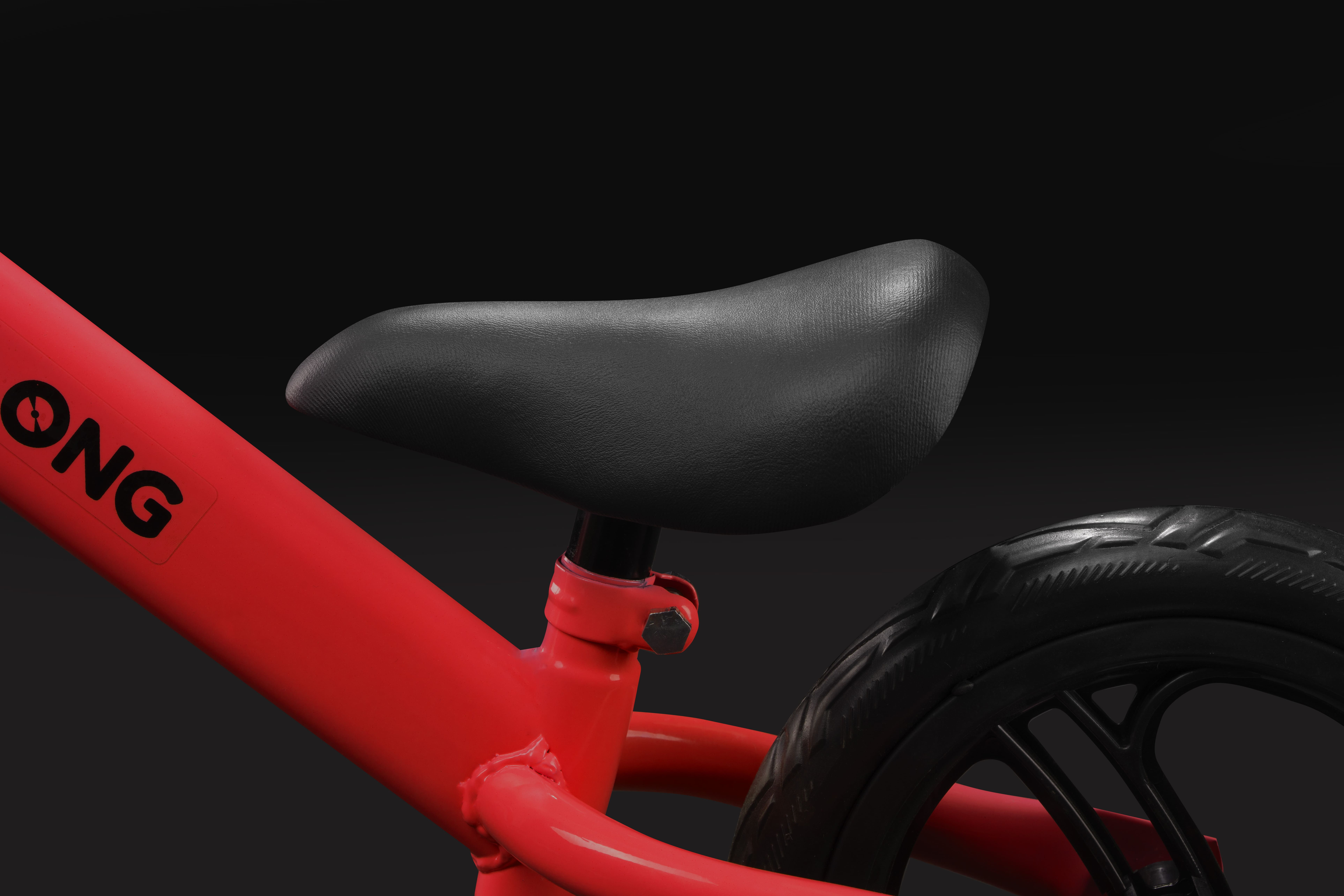 Беговел выполнен по традиционной компоновке городских велосипедов, с высоким рулем и низкой рамой. На ней пользователи располагаются на сидении с ровной спиной, не горбясь или сгибаясь. Такое положение оптимально для осанки детей и позволяет комфортно кататься долгое время даже по неровным поверхностям.
