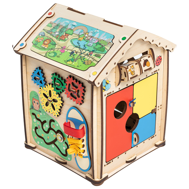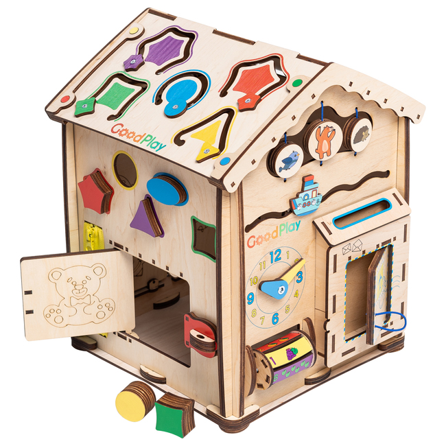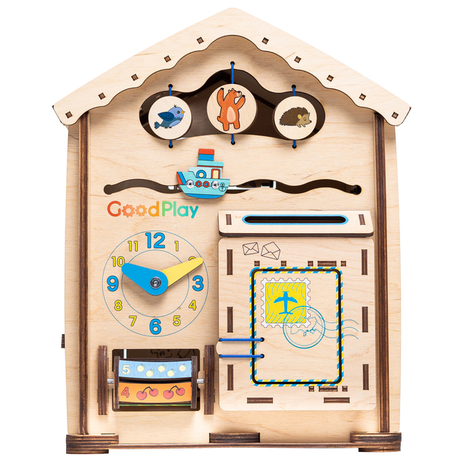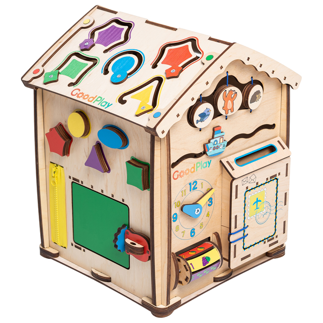 Бизидомик "Гений" GoodPlay собран и готов к игре. Материал: натуральная березовая фанера, экологически чистые краски на водной основе.