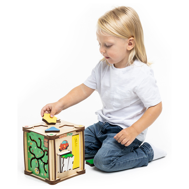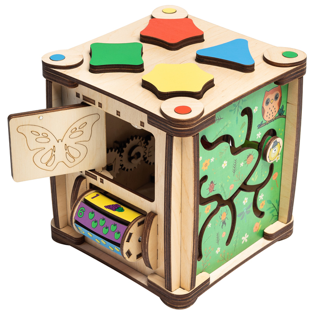 Бизикубик "Развитие" с LED подсветкой GoodPlay собран и готов к игре. Материал: натуральная березовая фанера, экологически чистые краски на водной основе.