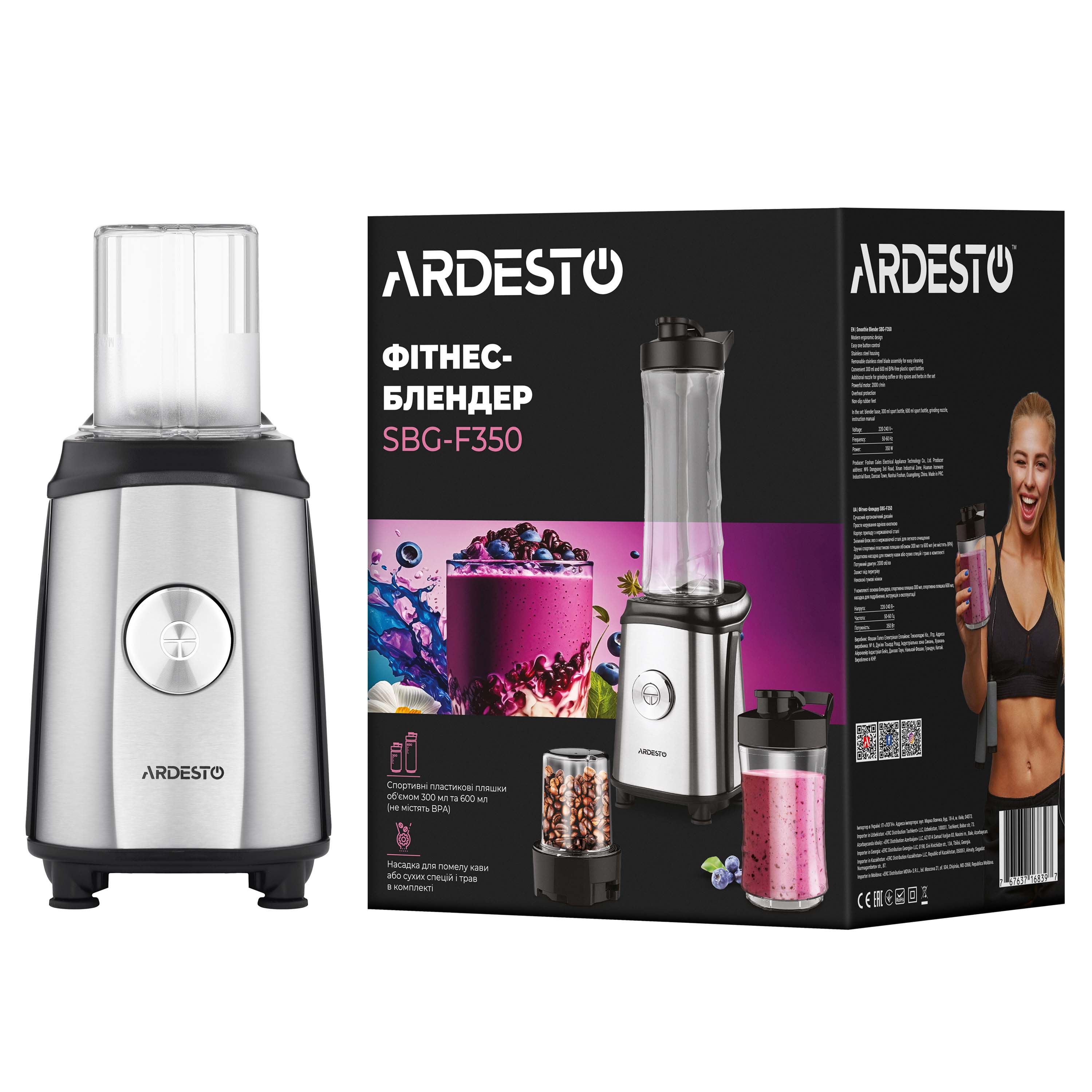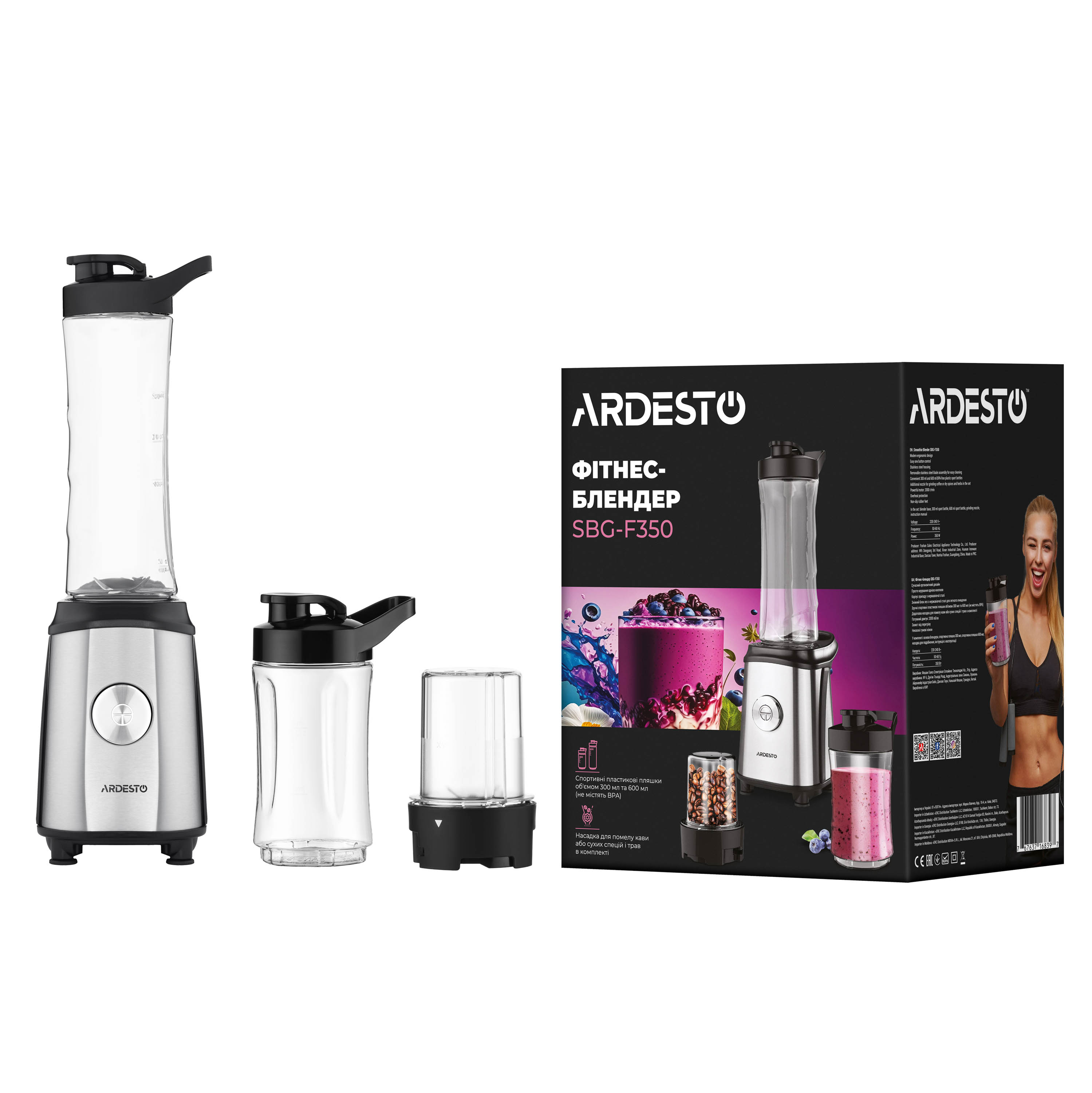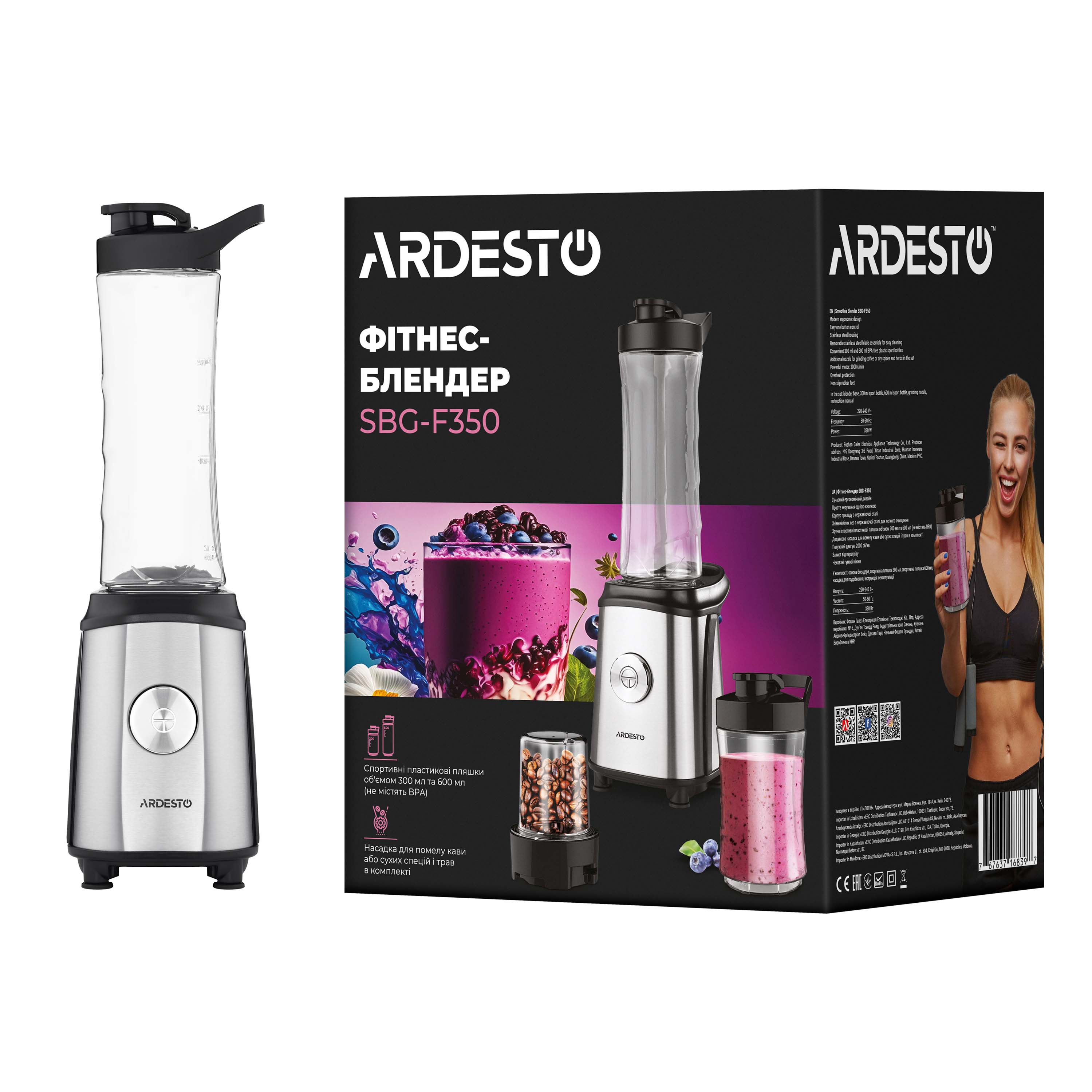 Фитнес-блендер SBG-F350 изготовлен в современном эргономичном дизайне. Продуманный до мелочей корпус устройства изготовлен из нержавеющей стали и содержит мощный двигатель 2 000 об/мин. Легкость использования обеспечивает простое управление одной кнопкой.