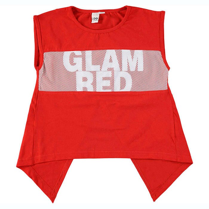 Суперстильный яркий топ без рукавов с круглой горловиной, спереди украшенный белой надписью "Glam Red". Оригинальность наряду придает удлиненная спинка с треугольным вырезом снизу. Идеально подходит для жарких летних дней Вашей девочке! Состав: 90% хлопок, 5% эластан. Цвет - красный. Детская одежда бренда iDO - это высокое европейское качество и лучшие модные тренды.