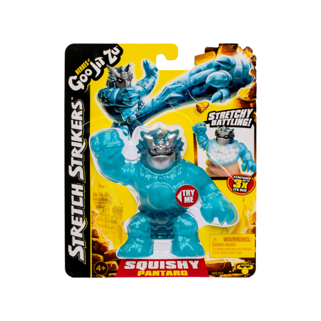 Cтретч-антистресс Goo Jit Zu Stretch strikers Пантаро - любимый герой, который возвращается и готов противостоять грозным злодеям Rock Jaw и Orbitox. Он способен растягиваться до 3-х раз, и не забудьте использовать EPIC Stretch Attack. Собери всех персонажей Goo Jit Zu Stretch Strikers с уникальным наполнением. Рекомендовано для детей от 4-х лет.