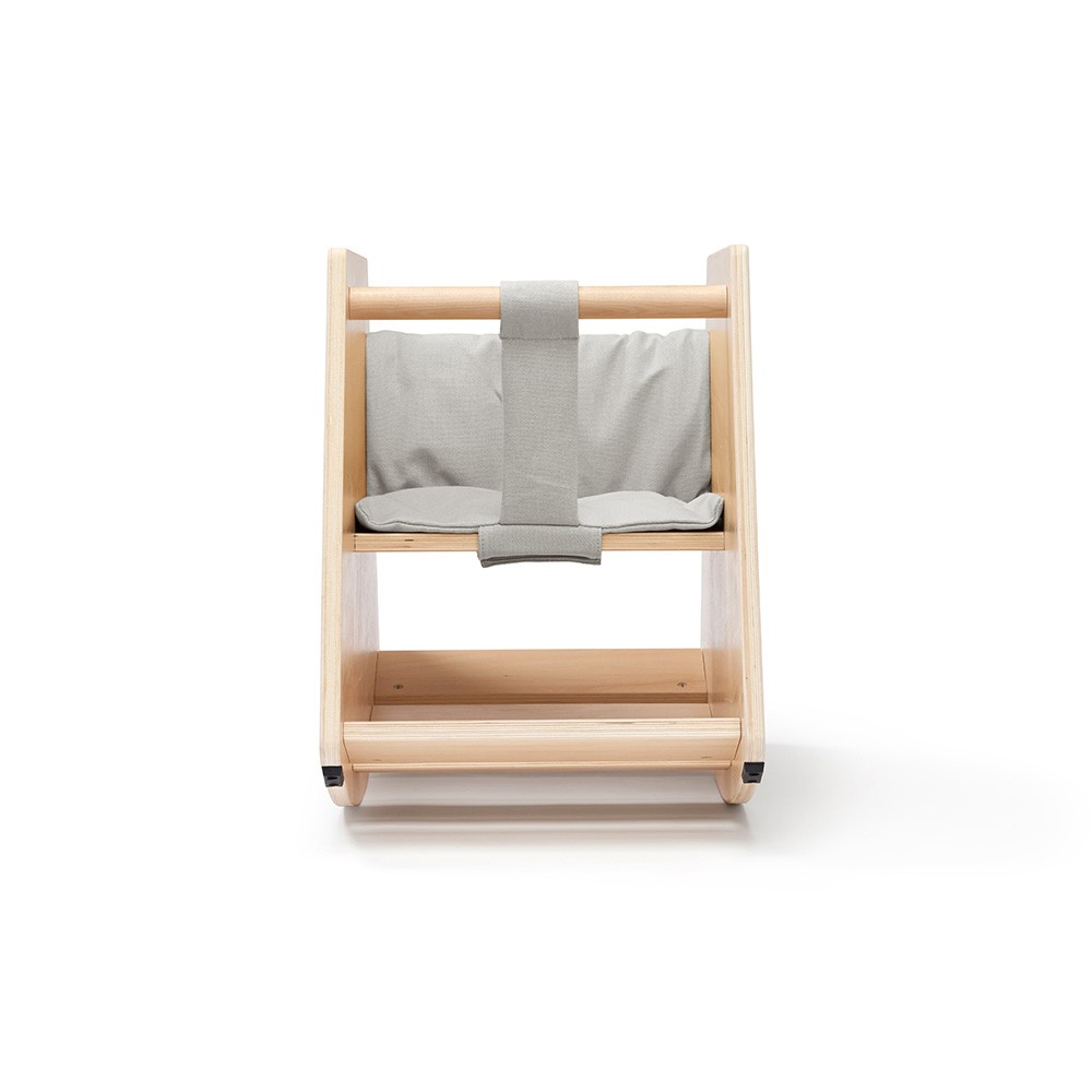 Качалка имеет сиденье, что обеспечивает хорошую поддержку спины малыша. Оснащена съемным текстилем, который можно стирать.