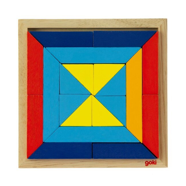 Мир геометрических форм рождается благодаря немецкому производителю игрушек goki. Деревянная развивающая игра упакована в прозрачную полиэтиленовую пленку, под которой видно 20 разноцветных треугольников. Каждая деталь набора произведенная с натурального дерева, покрытого красками на водной основе.